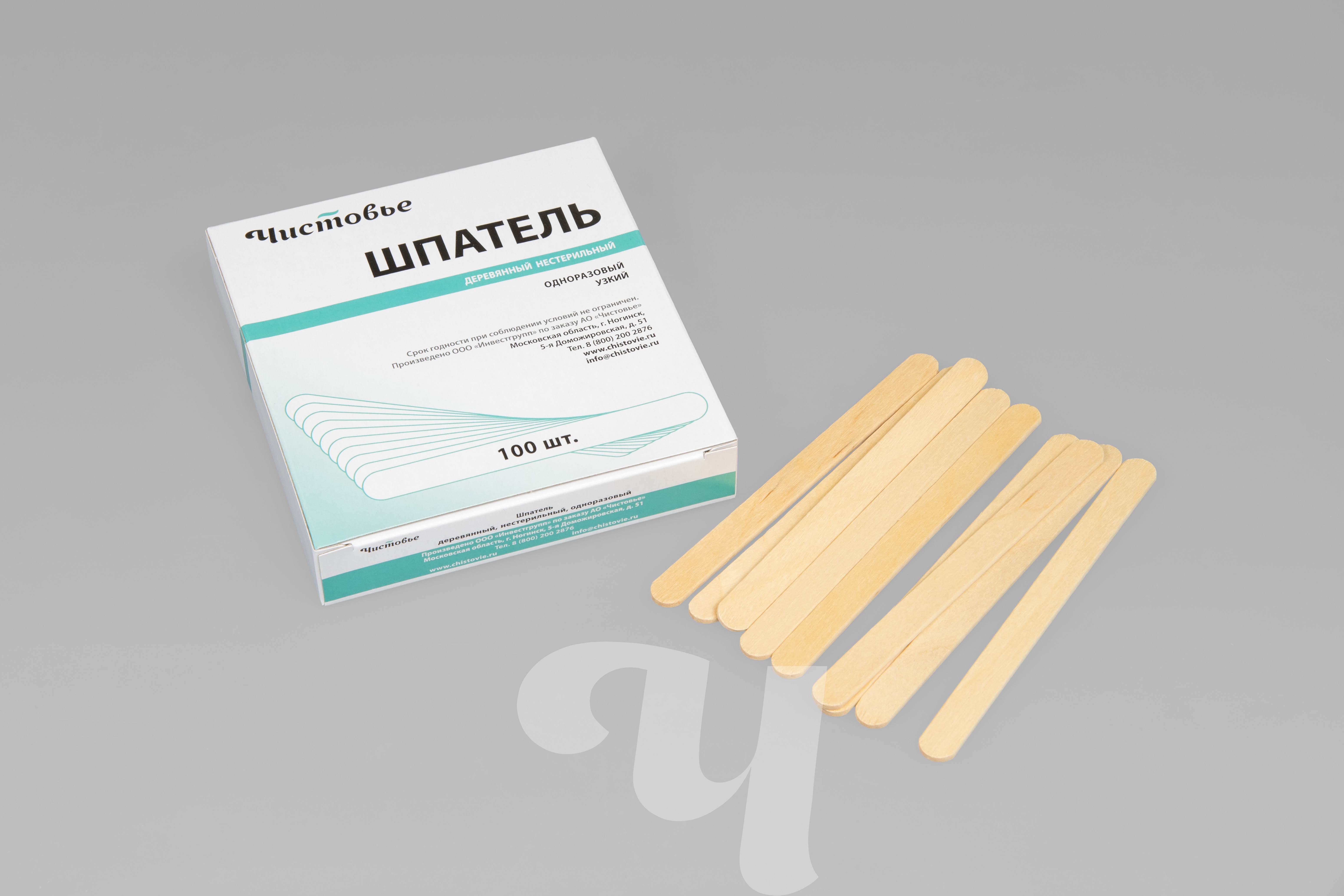 Шпатель узкий деревянный, 113х10х2 мм, 100 шт/упк