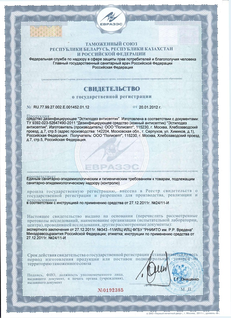 Спиртовой кожный антисептик предназначен для гигиенической обработки рук, а также кожи инъекционного поля. Кроме того, подходит для обработки ступней с целью профилактики грибковых заболеваний. Обладает высокой антимикробной активностью, не вызывает аллергии, сухости и раздражения кожи. В качестве действующих веществ содержит: изопропиловый  спирт (2-пропанол)  (48,0 ± 1,0%); н-пропиловый  спирт (1-пропанол) (12,0 ± 1,0%); цетримоний хлорид (гексадецилтриметиламмоний хлорид - ЧАС) (0,25 ± 0,01%). Имеет пролонгированное действие не менее 3 часов, не требуется частое мытье рук. Емкости на выбор: 200 мл в виде удобного спрея, 1 и 5 л - для экономичного использования.  Спиртовой антисептик Эстилодез используется в соответствии с инструкцией по применению. Ознакомиться с инструкцией по применению антисептика Эстилодез можно на нашем сайте.