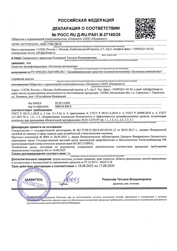 Для дезинфекции инструментов в нашем ассортименте есть дезсредства-концентраты линейки Эстилодез и Чистодез. Кожный антисептик не предназначен для дезинфекции для инструментов.