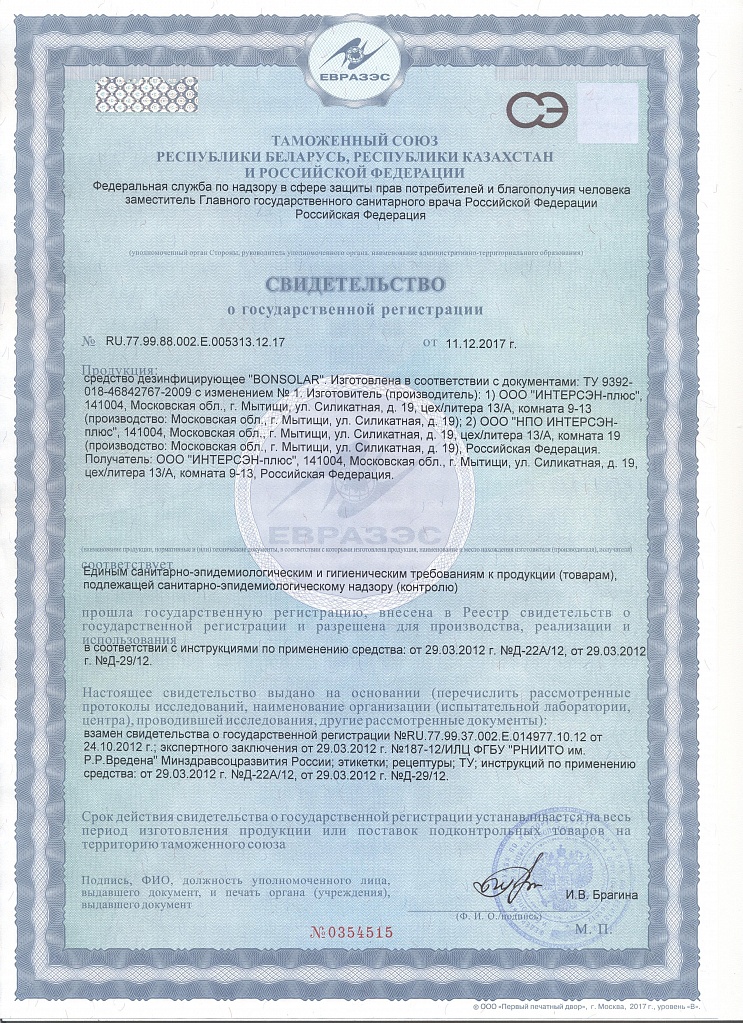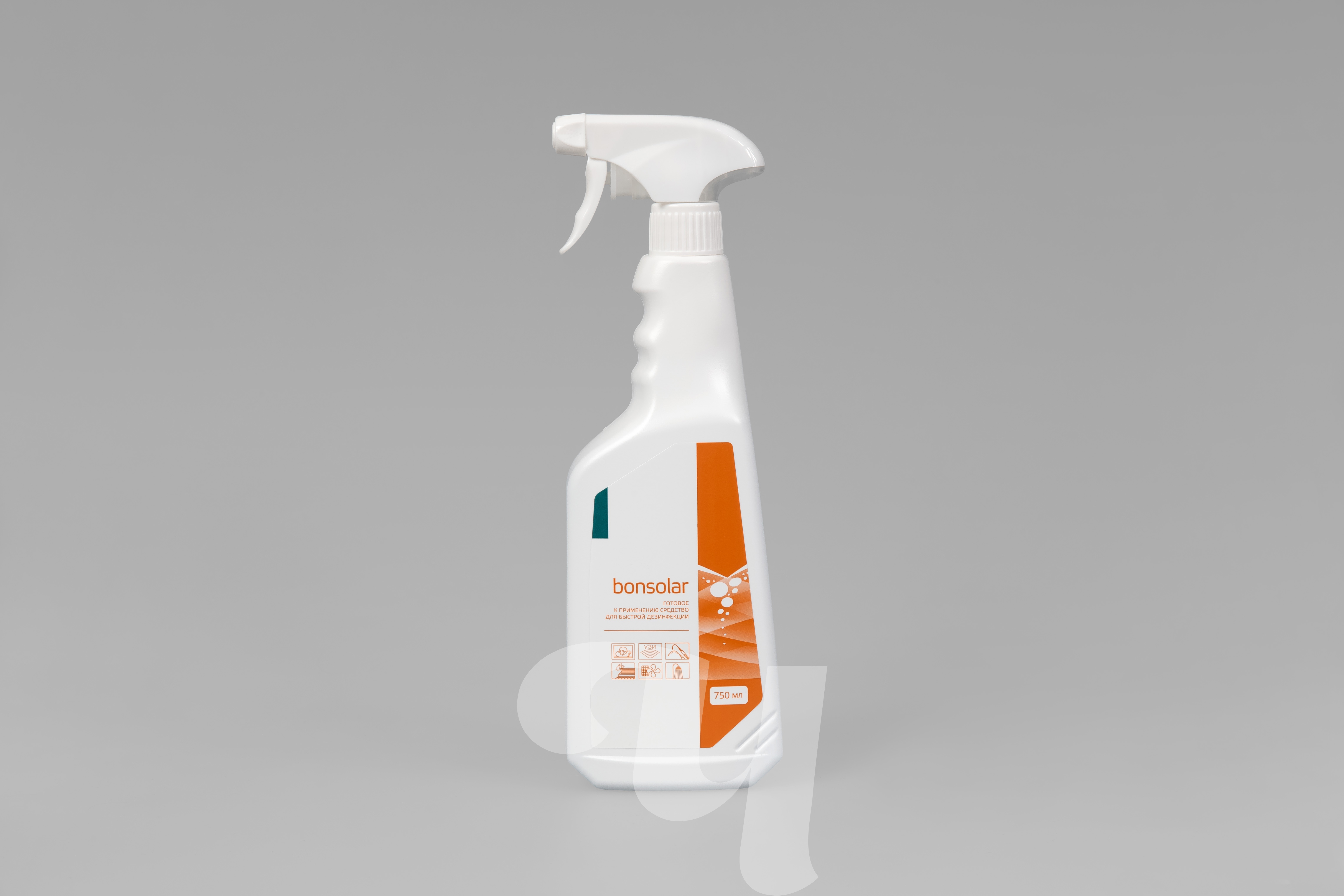 Готовое к применению бесспиртовое средство для экстренной дезинфекции. Спрей обладает хорошими моющими, дезинфицирующими и дезодорирующими свойствами, не повреждает поверхности, не вызывает коррозию. Удаляет любые типы загрязнений (в том числе пот, кожный жир, клетки эпидермиса, остатки косметических средств и другие), оставляя поверхность идеально чистой и обеззараженной. Безопасно в применении, гипоаллергенно. Обеззараживание поверхностей можно проводить в присутствии людей. Безопасно в применении. Экспозиция 5 минут. Спрей для быстрой дезинфекции Bonsolar используется в соответствии с инструкцией по применению.
