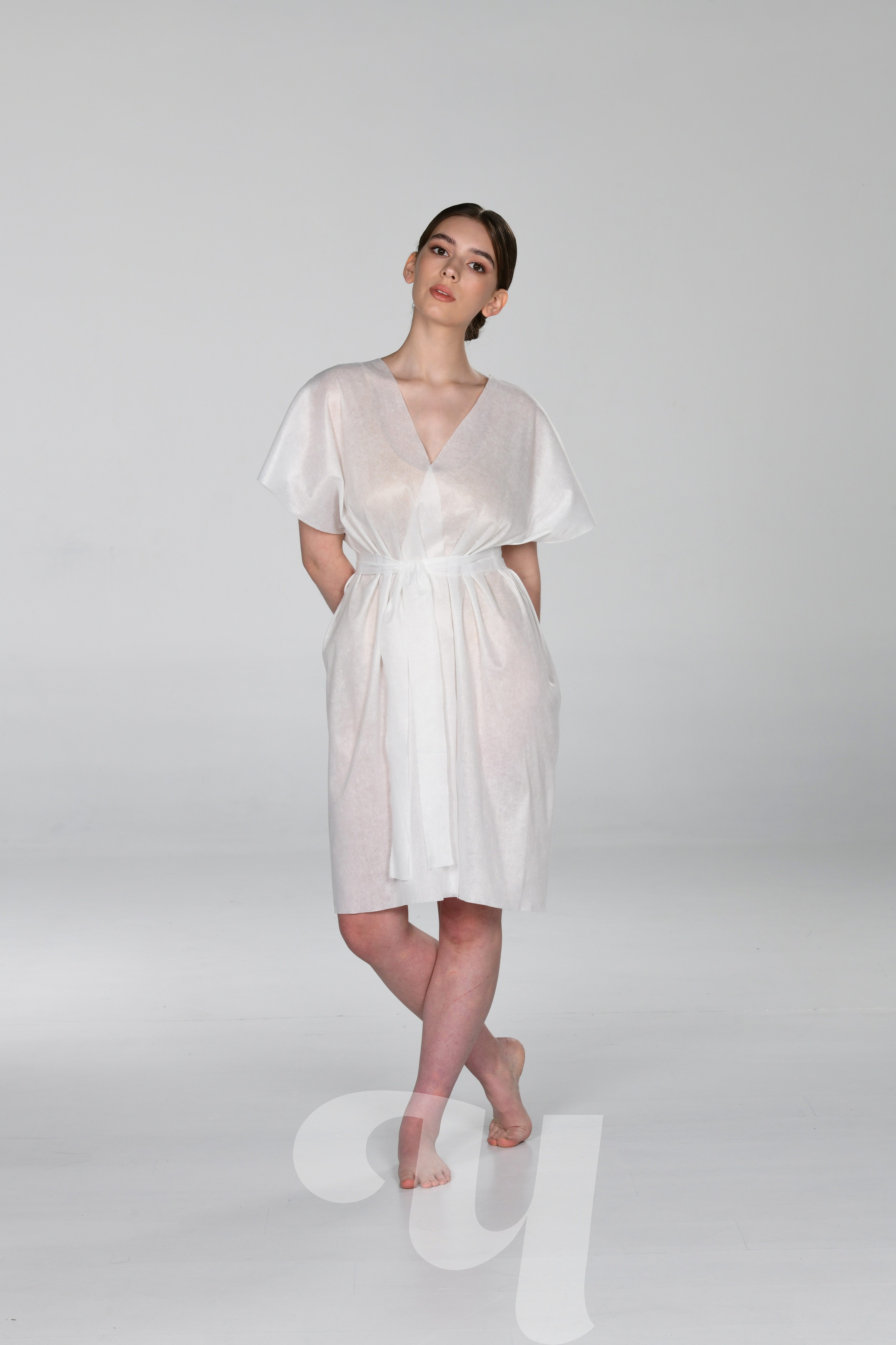 Главная  Каталог одноразовой продукции  Расходные материалы  Расходные материалы и одежда для процедур  Халаты  Халат-кимоно из спанлейса без рукавов с поясом, универсальный, белый, 10 шт/упк