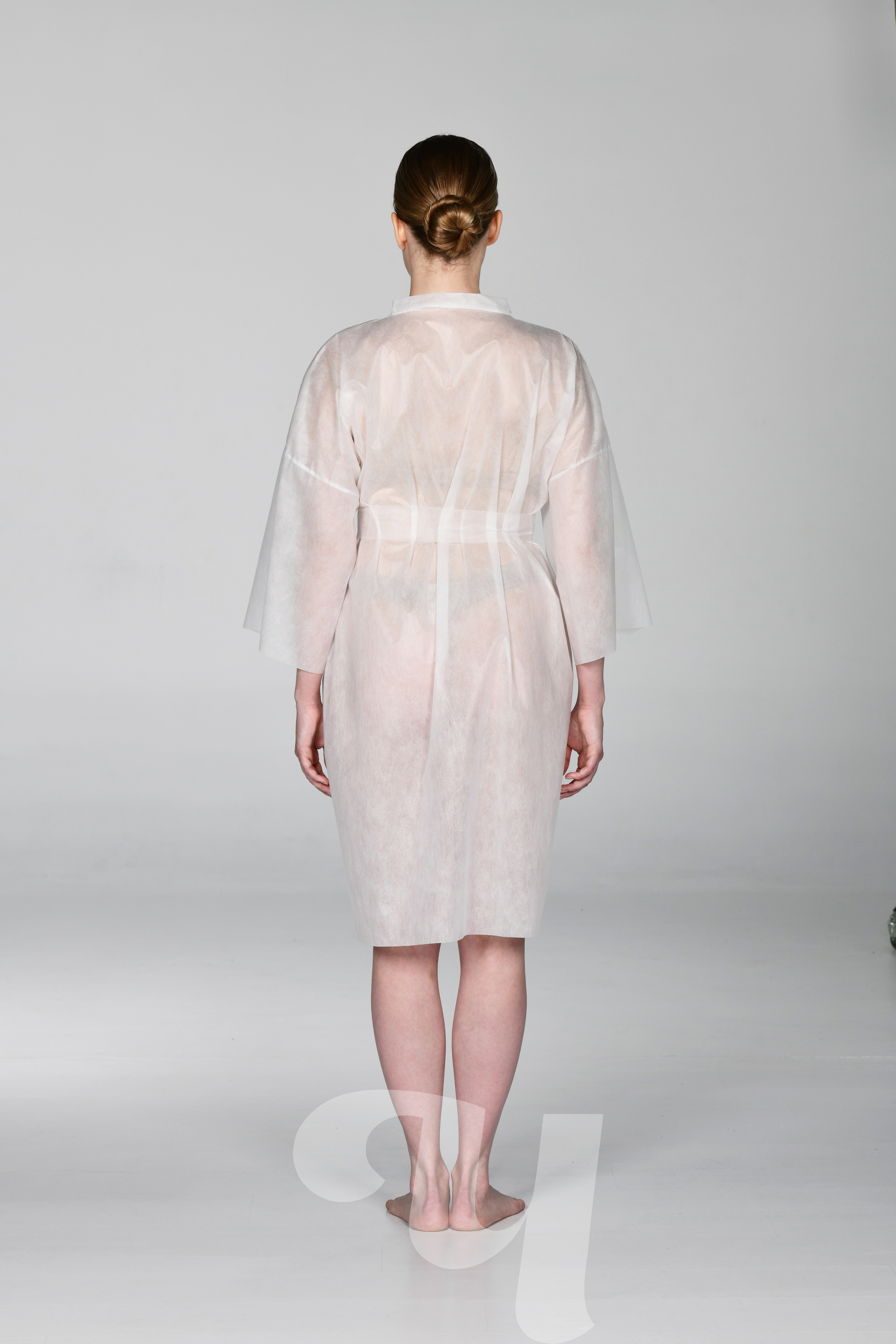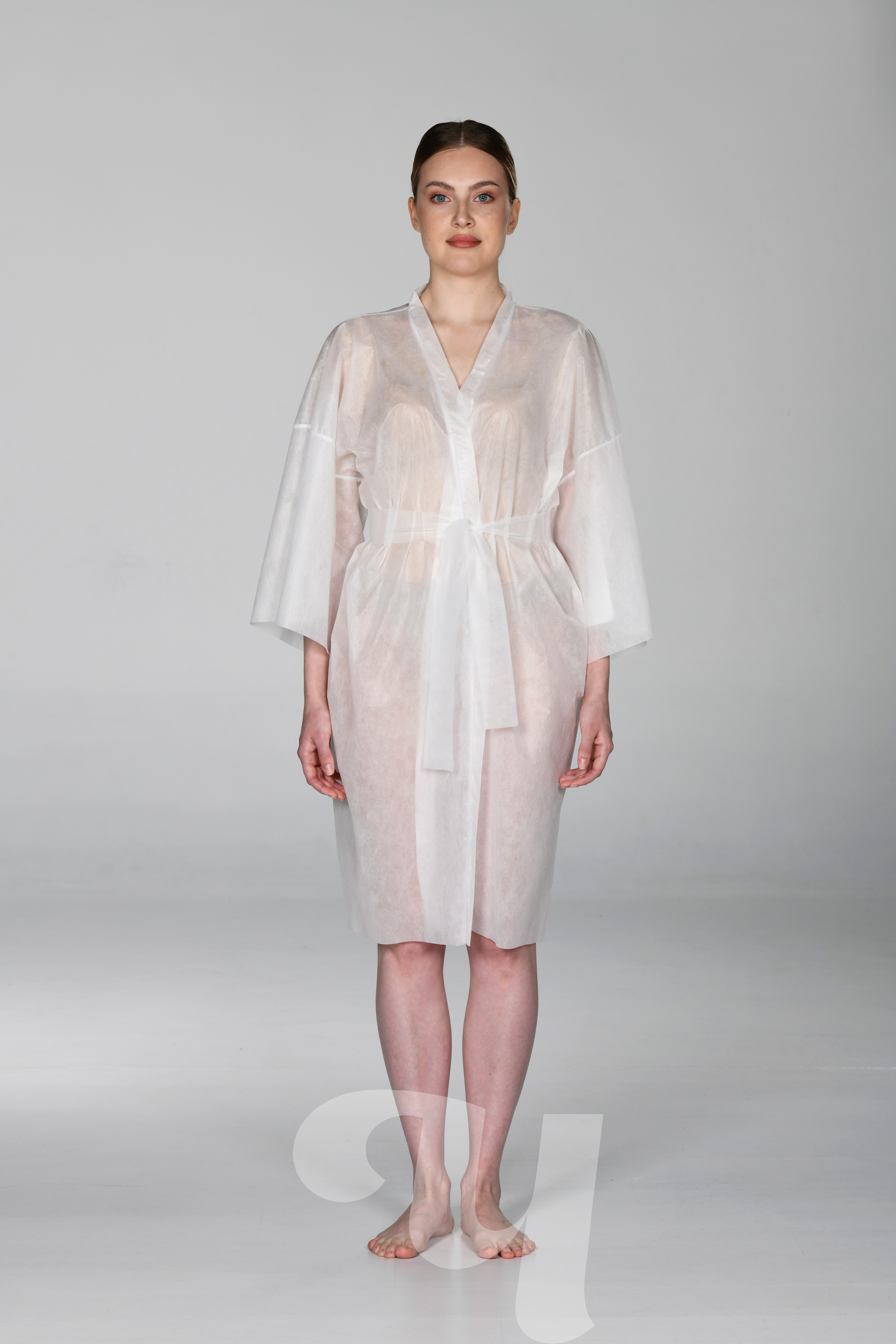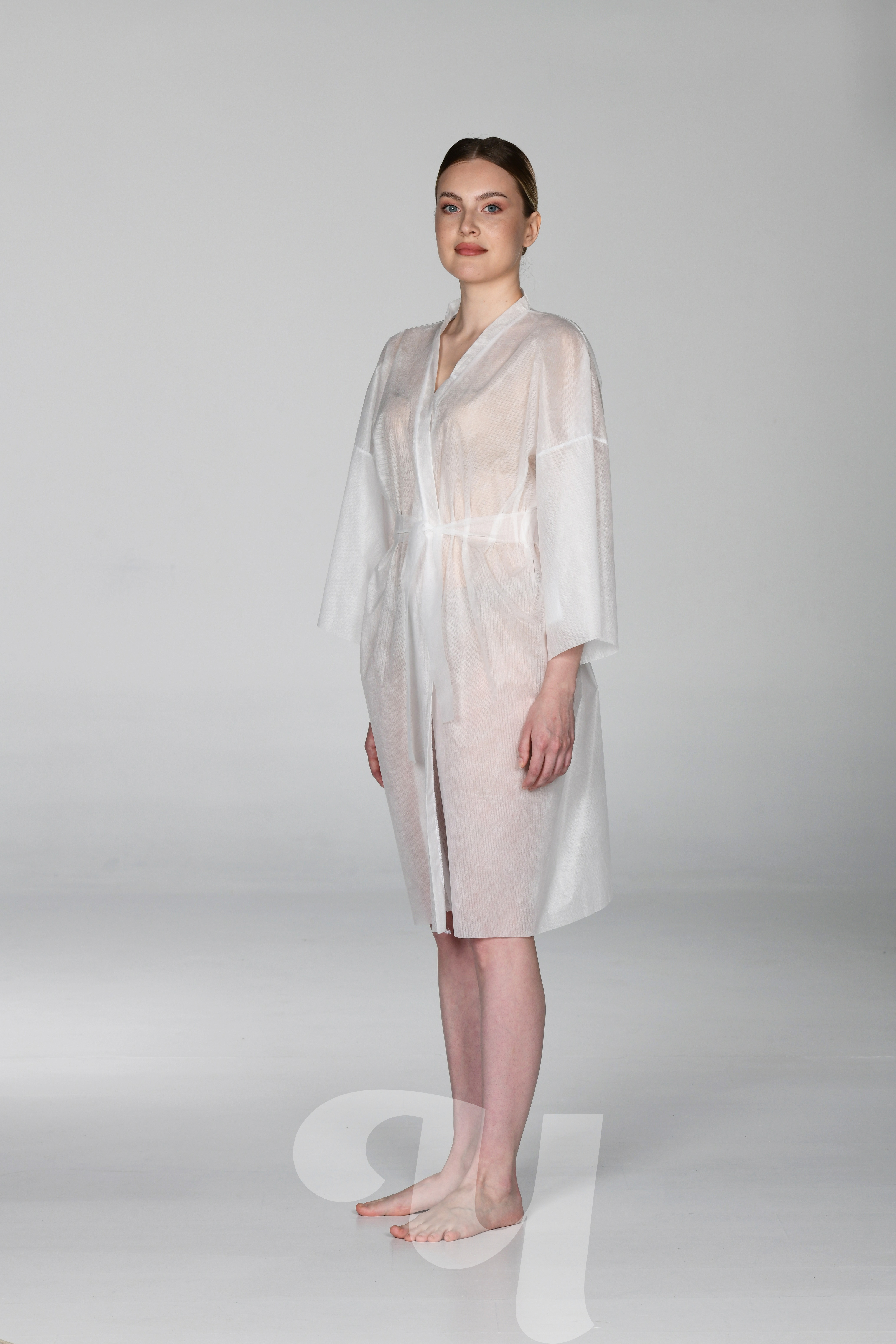Халат-кимоно из SMS с рукавами и поясом, универсальный, белый, 5 шт/упк