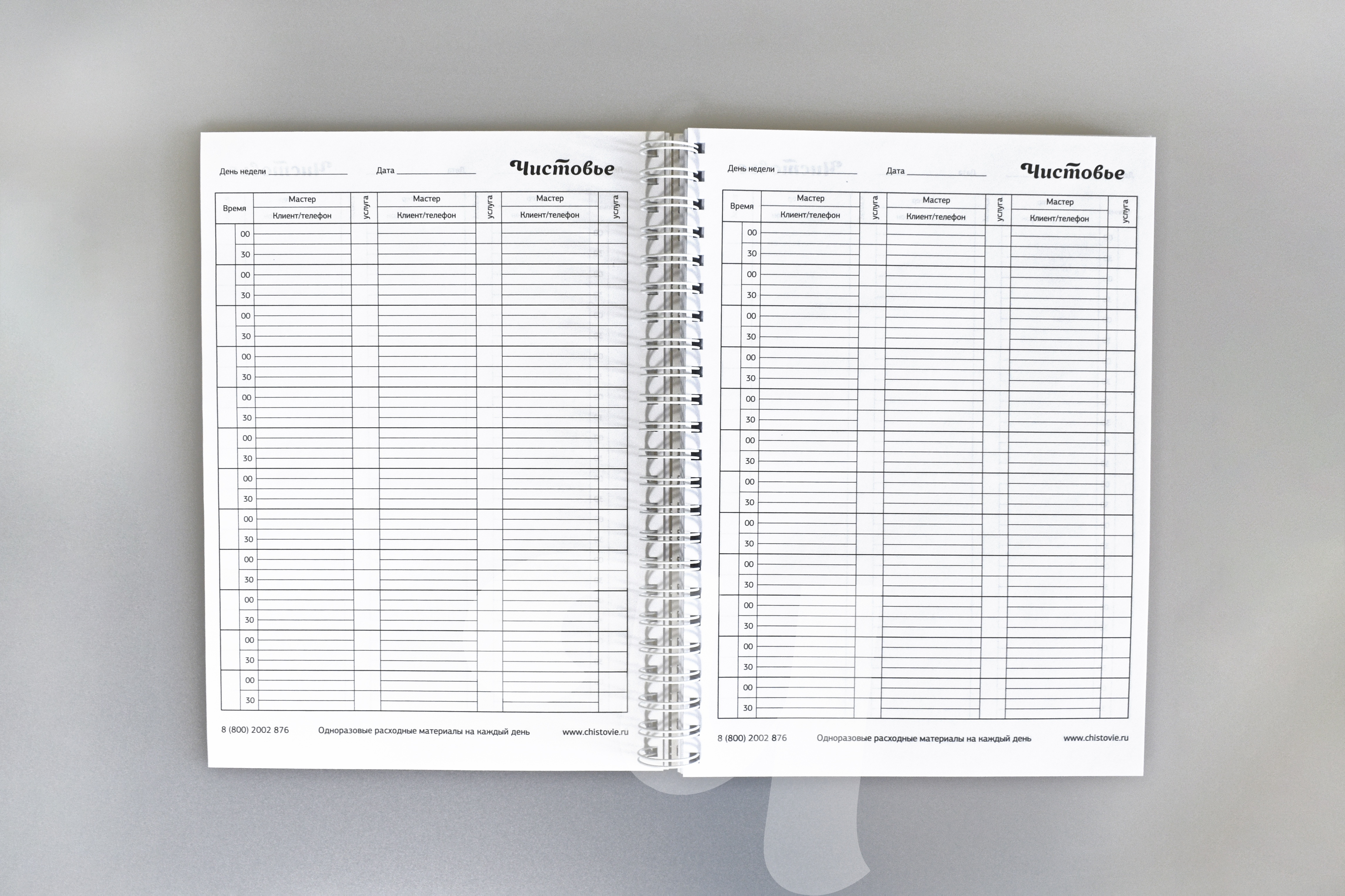 Книга для записи клиентов является главным элементом работы администратора салона красоты или парикмахерской, она позволяет спланировать время работы мастеров и загрузки заведения. В книге 188 страниц, формата A4. В конце размещен разворот для пометок важных дат постоянных клиентов.