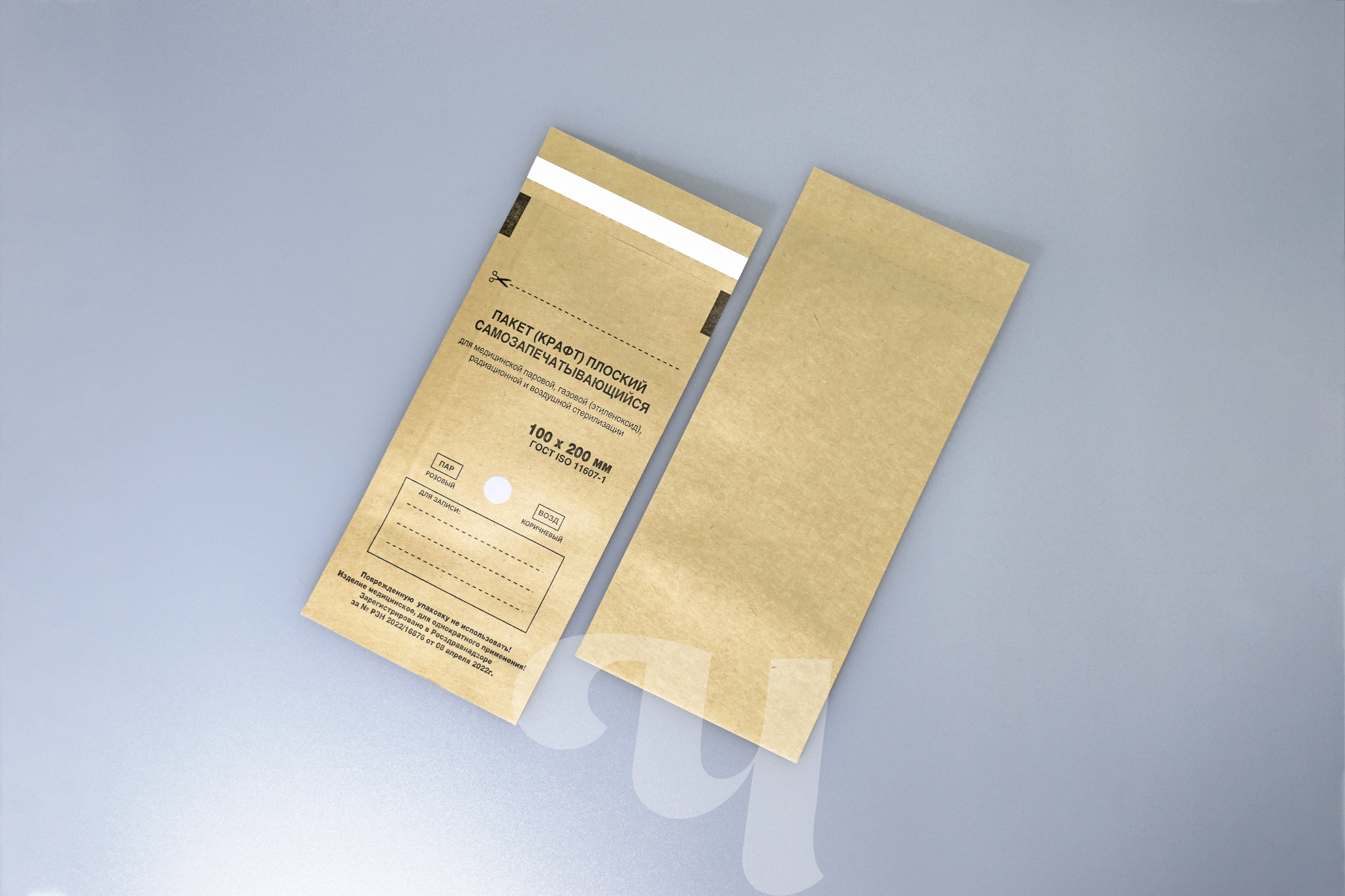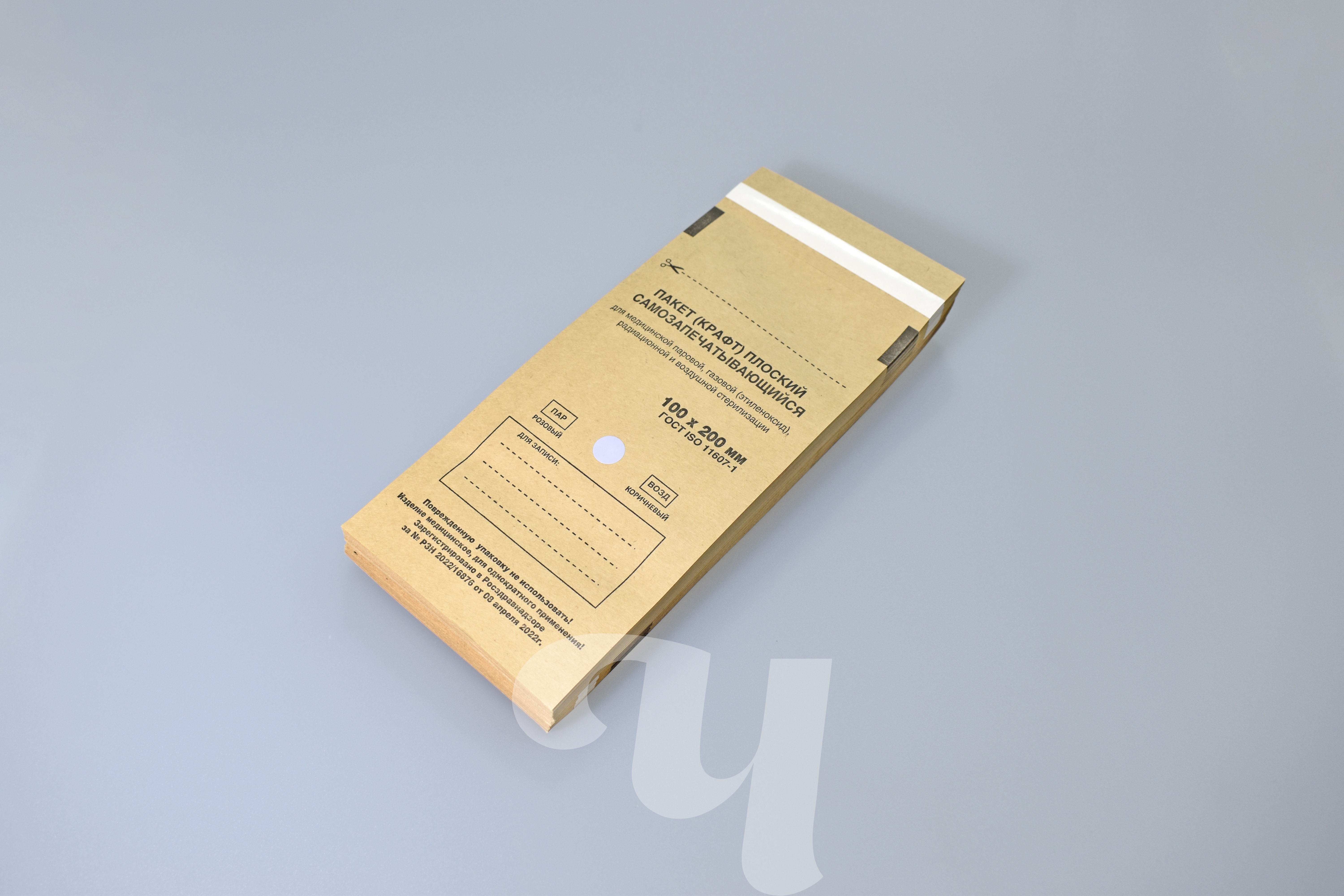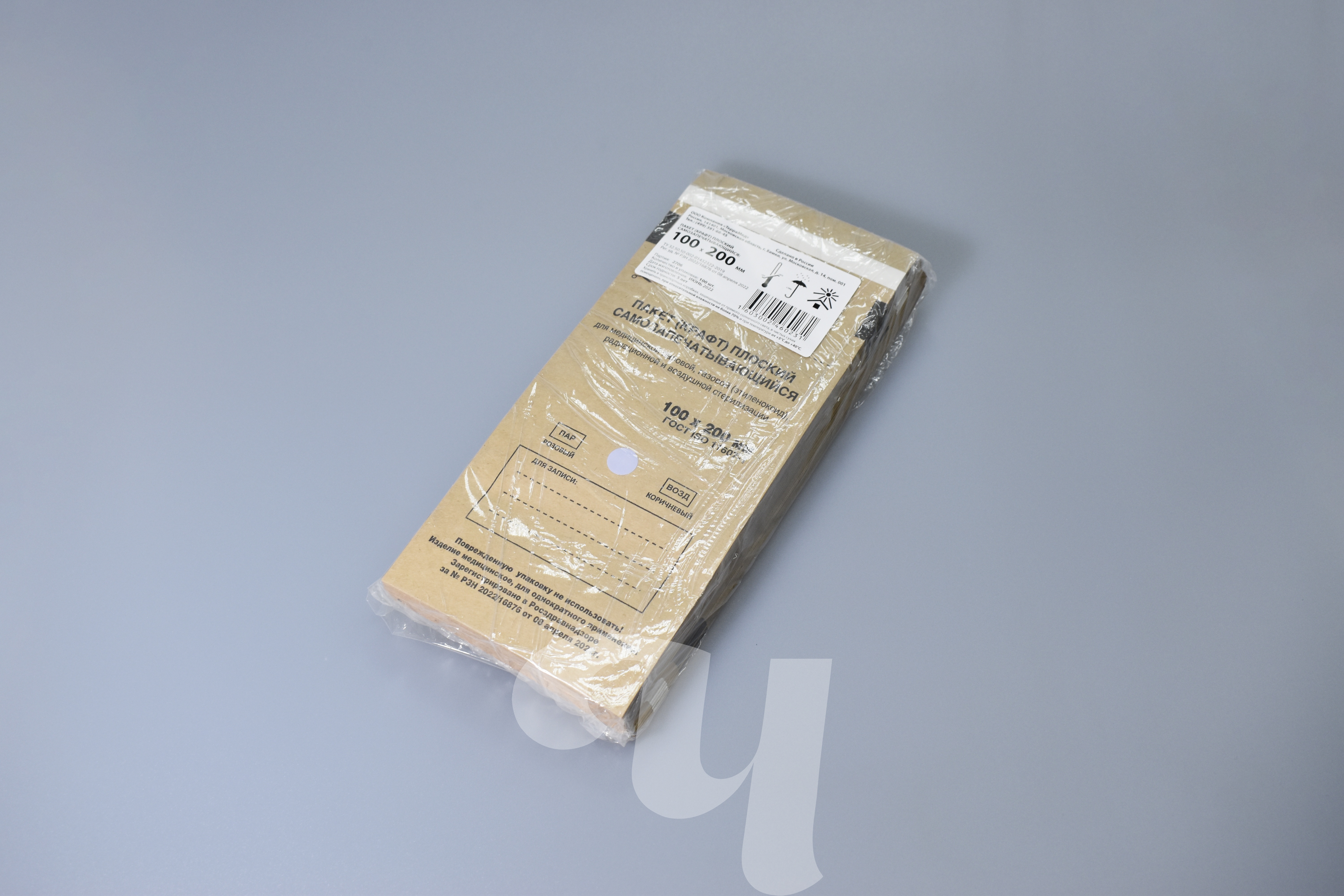 Самозапечатывающийся влагопрочный крафт-пакет предназначен для упаковывания медицинских изделий перед стерилизацией с целью сохранения стерильности этих изделий после стерилизации во время их транспортировки и хранения до использования по назначению. Предназначены для паровой, воздушной, газовой (оксидом этилена), радиационной стерилизации. Пакет содержит индикатор стерилизации класса 1, необратимо изменяющие свой цвет после обработки в стерилизаторе. Изменение цвета индикатора позволяет визуально отличить упаковки, прошедшие стерилизацию, от упаковок, не подвергавшихся стерилизационной обработке, и тем самым снизить риск смешения стерилизованных и не стерилизованных изделий. Внимание, изменение цвета индикаторов класса 1 не позволяет судить о качестве проведения стерилизации. Для этих целей необходимо использовать индикаторы класса 4-6. Срок годности: 5 лет. Количество в упаковке: 100 пакетов. Является изделием медицинского назначения. Регистрационные удостоверения: РЗН 2022/16876 от 08 апреля 2022г., ТУ 32.50.50-002-01432322-2019.