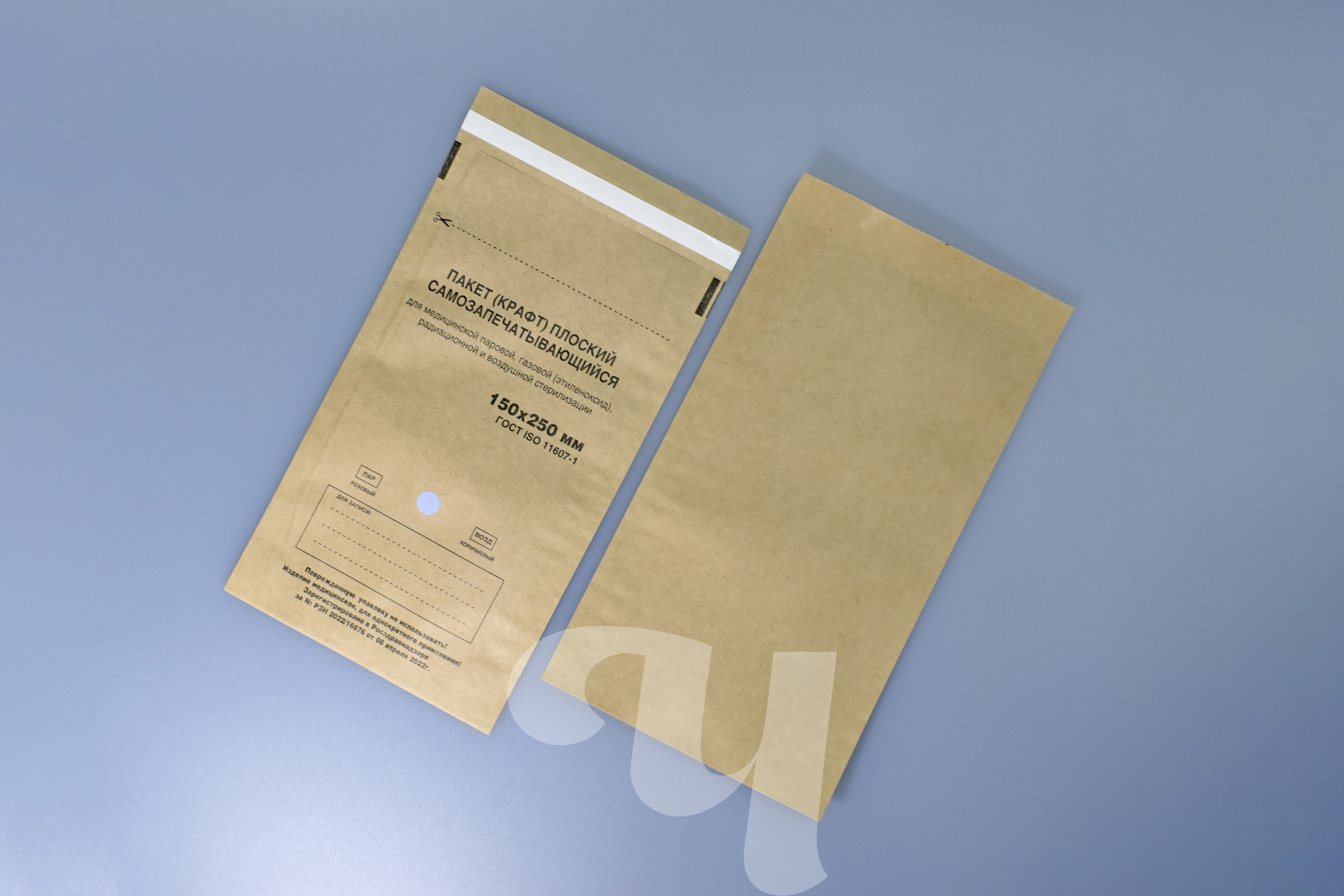 Самозапечатывающийся влагопрочный крафт-пакет предназначен для упаковывания медицинских изделий перед стерилизацией с целью сохранения стерильности этих изделий после стерилизации во время их транспортировки и хранения до использования по назначению. Предназначены для паровой, воздушной, газовой (оксидом этилена), радиационной стерилизации.Пакет содержит индикатор стерилизации класса 1, необратимо изменяющие свой цвет после обработки в стерилизаторе. Изменение цвета индикатора позволяет визуально отличить упаковки, прошедшие стерилизацию, от упаковок, не подвергавшихся стерилизационной обработке, и тем самым снизить риск смешения стерилизованных и не стерилизованных изделий. Внимание, изменение цвета индикаторов класса 1 не позволяет судить о качестве проведения стерилизации. Для этих целей необходимо использовать индикаторы класса 4-6. Срок годности: 5 лет. Количество в упаковке: 100 пакетов. Является изделием медицинского назначения. Регистрационные удостоверения: РЗН 2022/16876 от 08 апреля 2022г., ТУ 32.50.50-002-01432322-2019.
