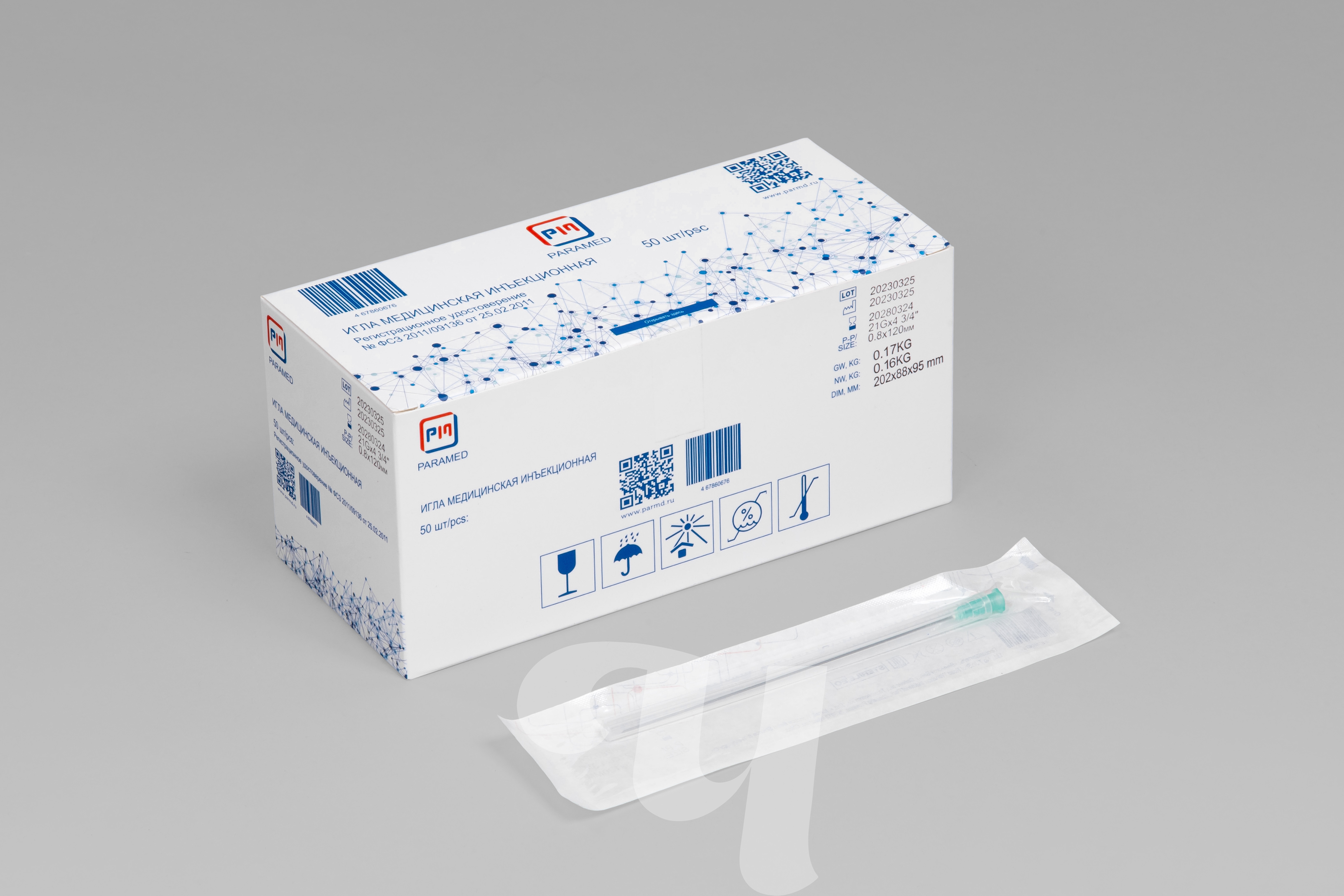Игла медицинская инъекционная, 21G х 120 мм, 50 шт/упк