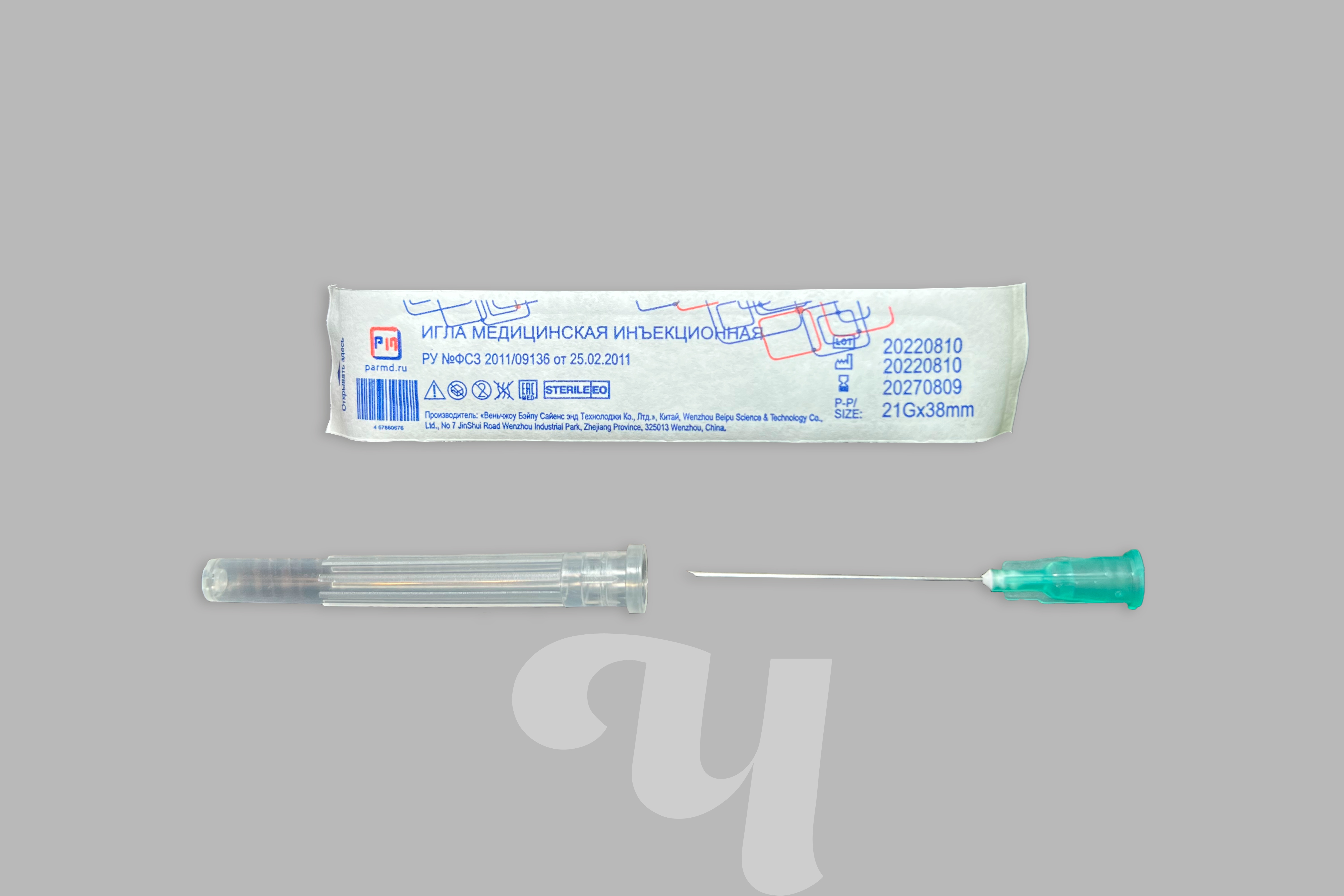 Игла медицинская инъекционная, 21G х 38 мм, 1 шт/упк