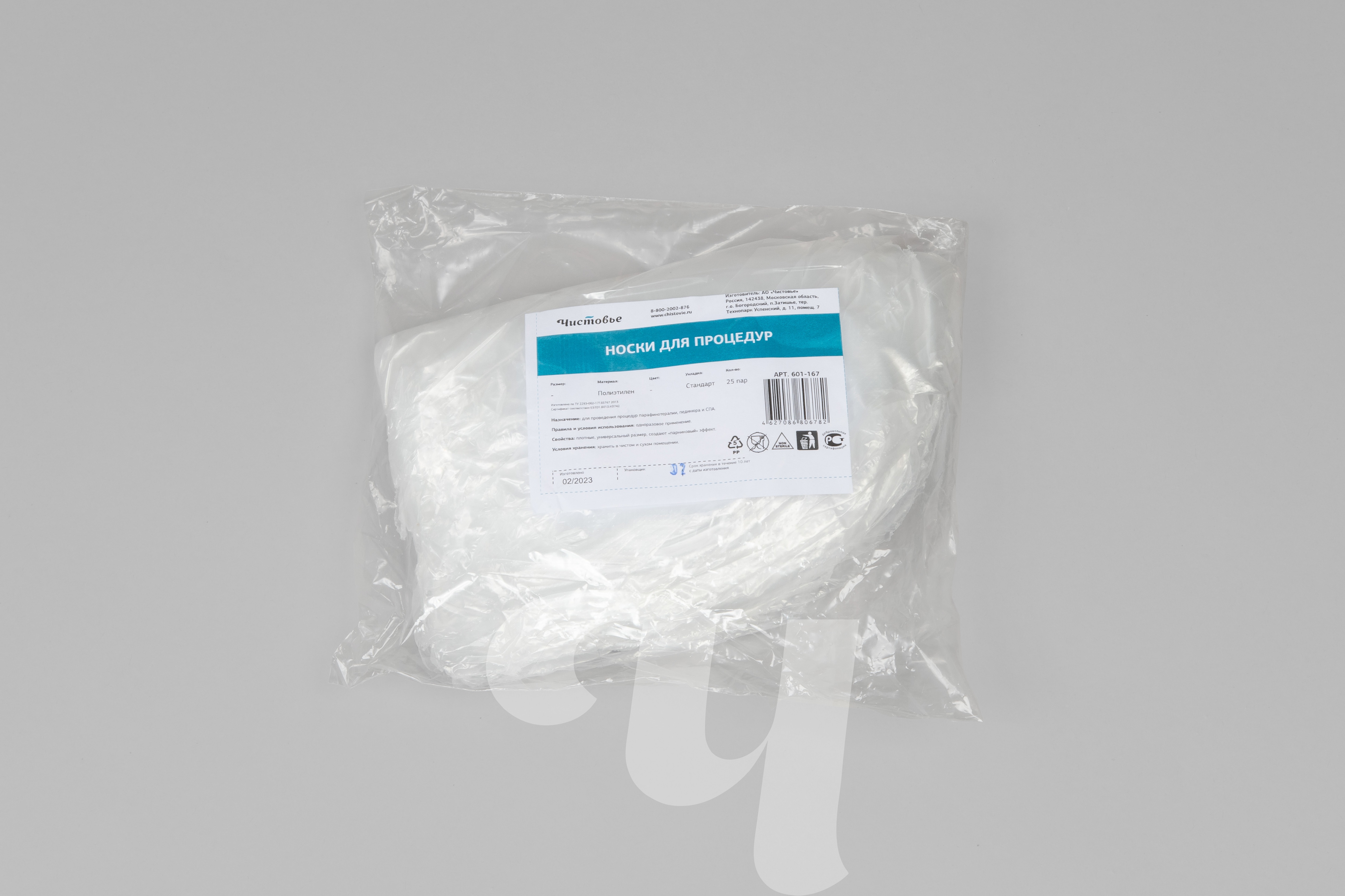 Качественные одноразовые носки с фиксатором, прилегающие к ноге, выполненные из плотного полиэтилена собственного производства. Имеют универсальный размер (до 43-го).