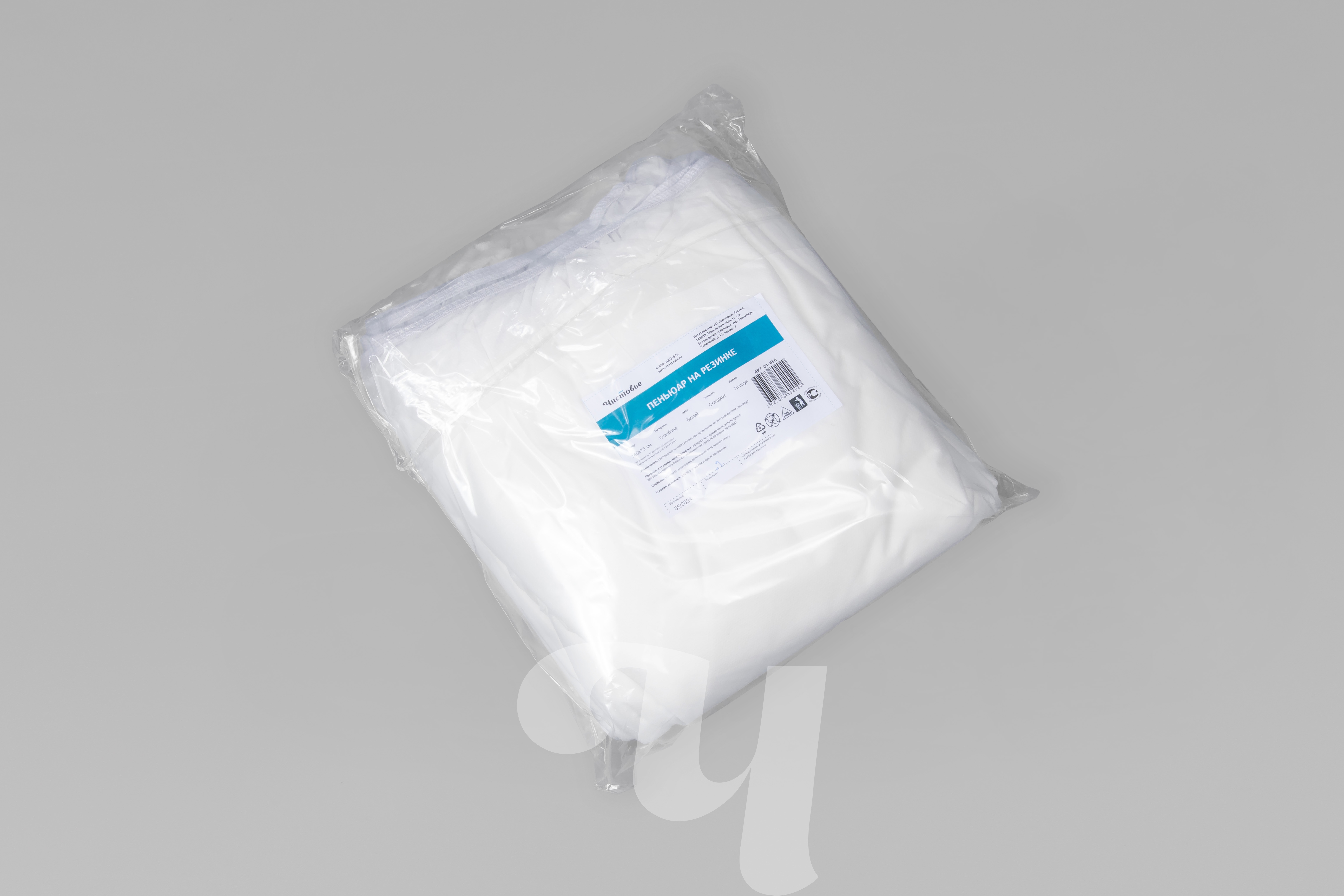 Пеньюар из спанбонда на резинке по линии декольте с завязками, 140х75 см, белый, 10 шт/упк