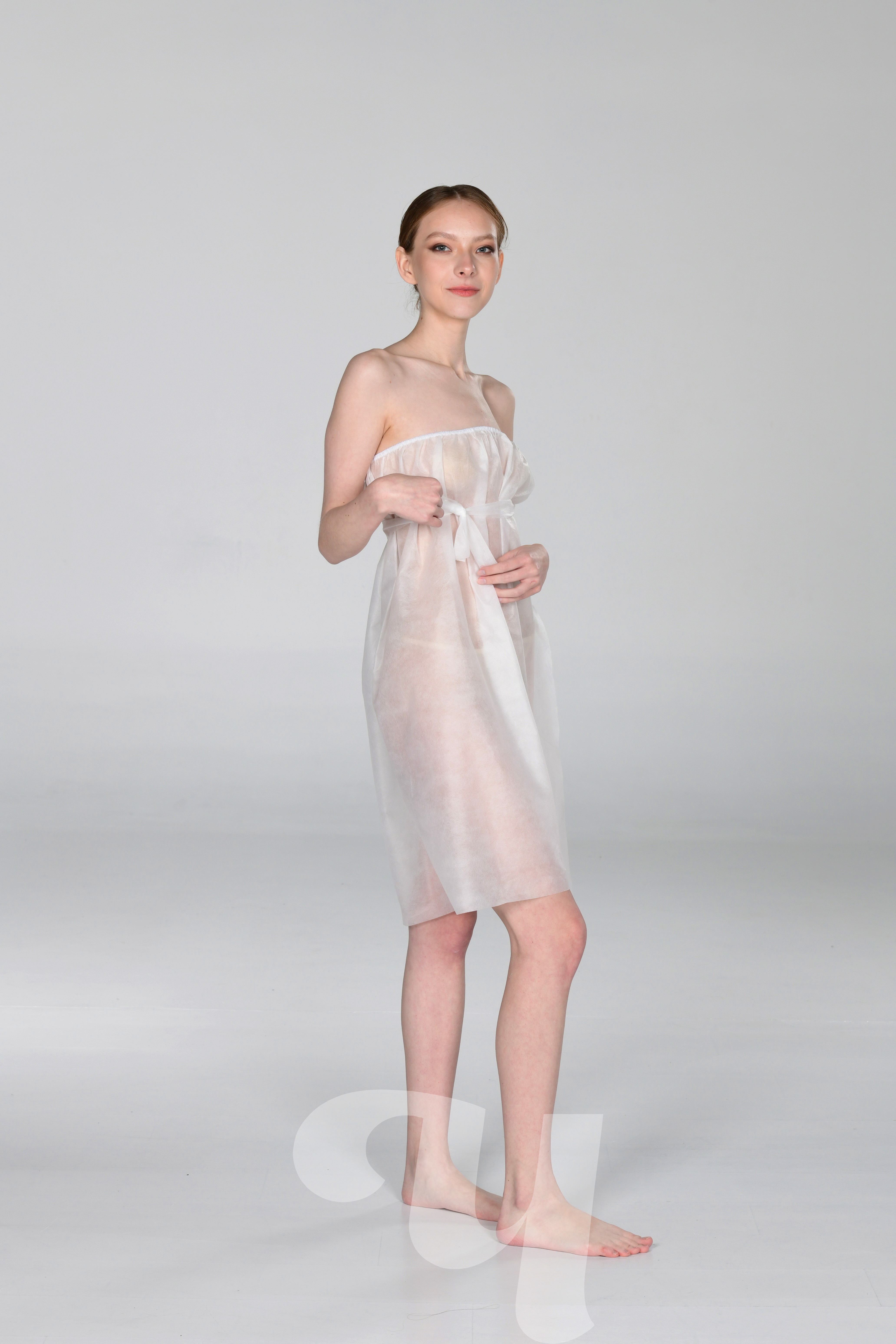 Одноразовые пеньюары на резинке из мягкого материала. Защищают нижнее белье от косметических средств и обеспечивают дополнительный комфорт. Особенно подходят для процедур в области декольте.