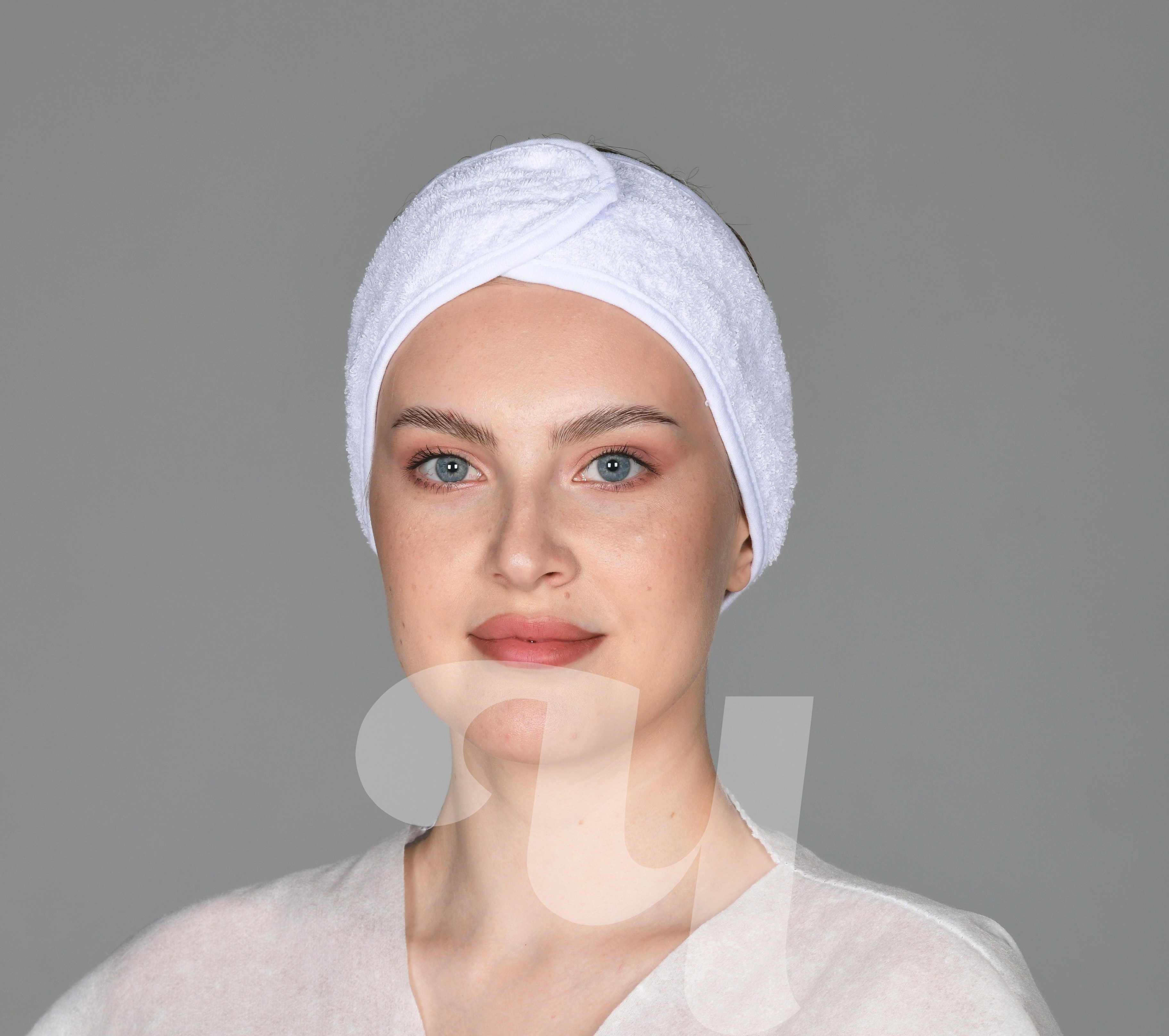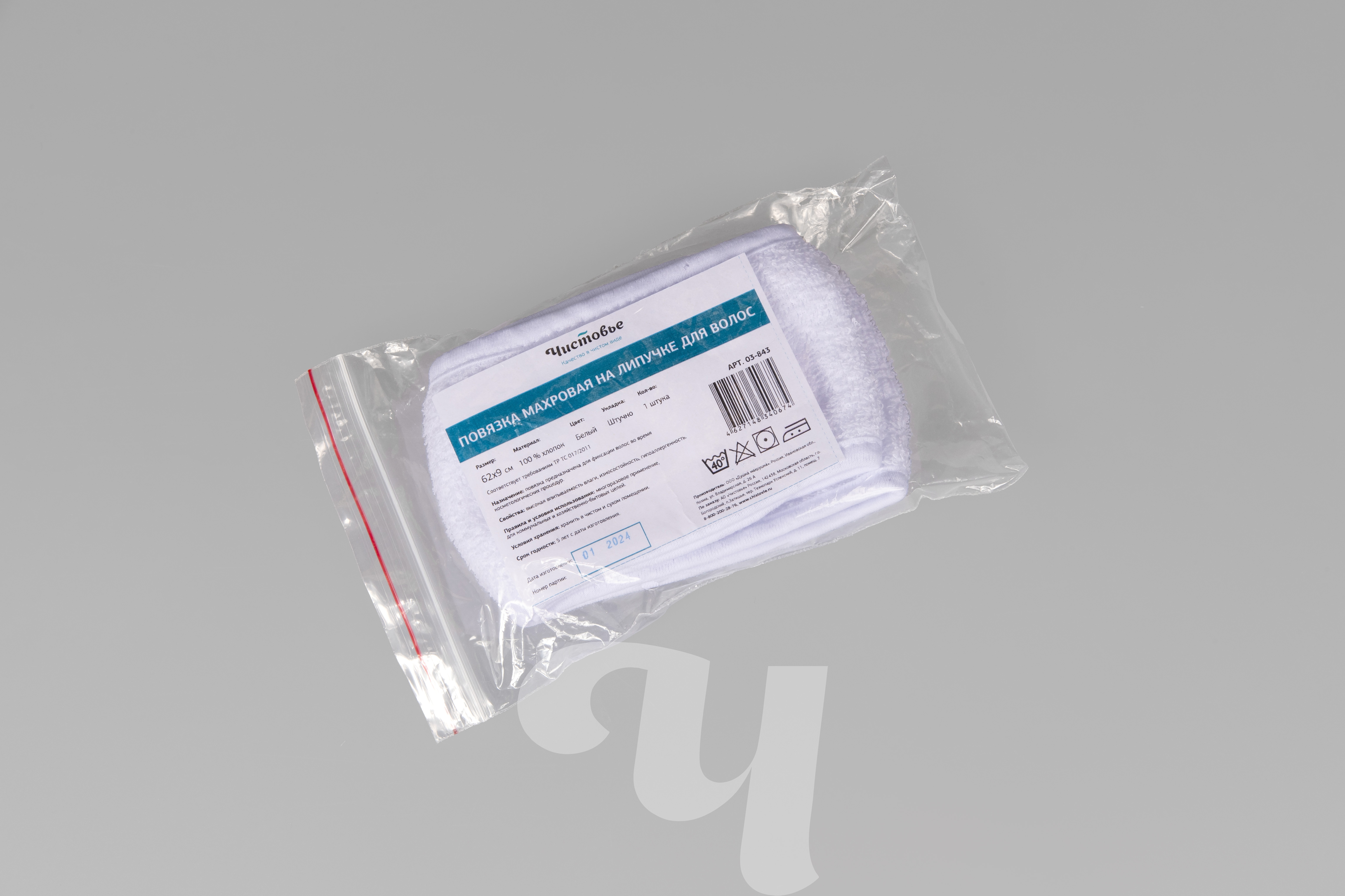 Повязка для волос махровая на липучке, 9х62 см, Белый, 1 шт/упк