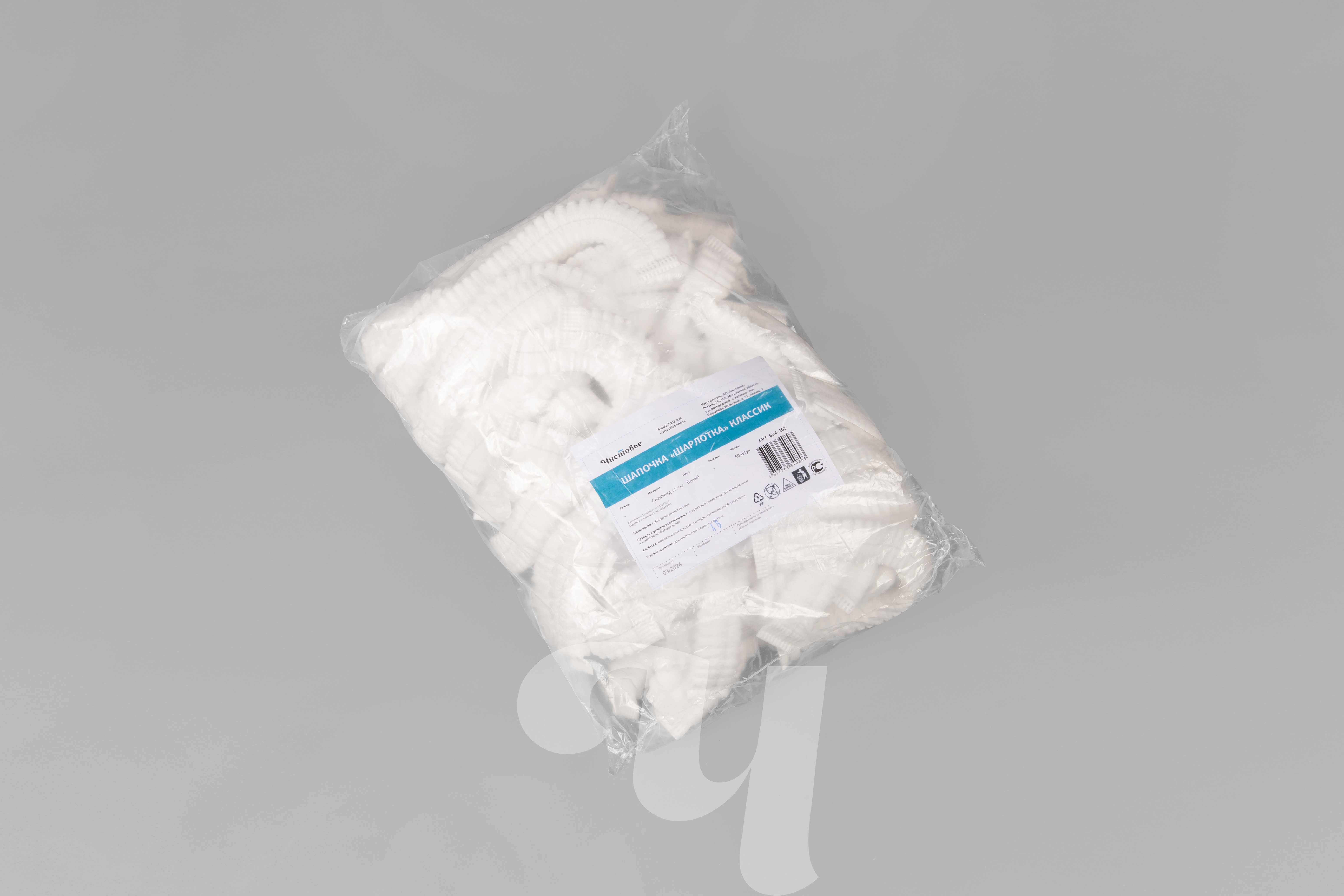 Шапочка-шарлотка Классик из спанбонда, Белый, 50 шт/упк