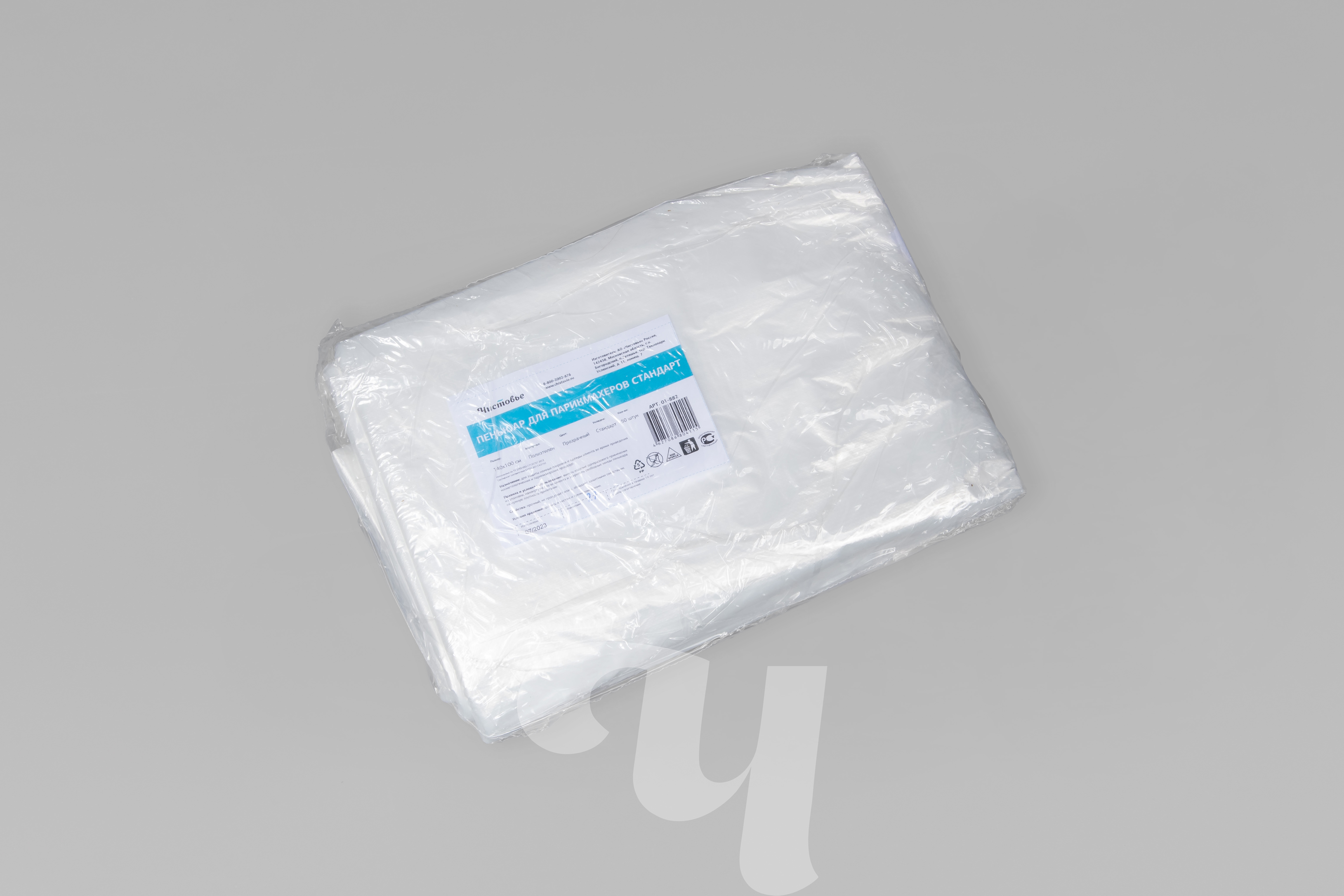 Пеньюар стандарт из полиэтилена, 140х100 см, прозрачный, 50 шт/упк