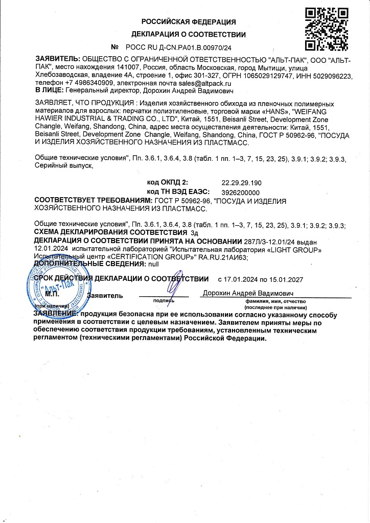 Одноразовые перчатки изготовлены из прочного полиэтилена низкого давления. Идеально обеспечивают защиту рук от влаги, масла, жира, грязи и бытовой химии, красящих веществ, эффективны при защите от микроорганизмов. Вес перчатки: 0,6 г. Толщина: 7,8 мкм.