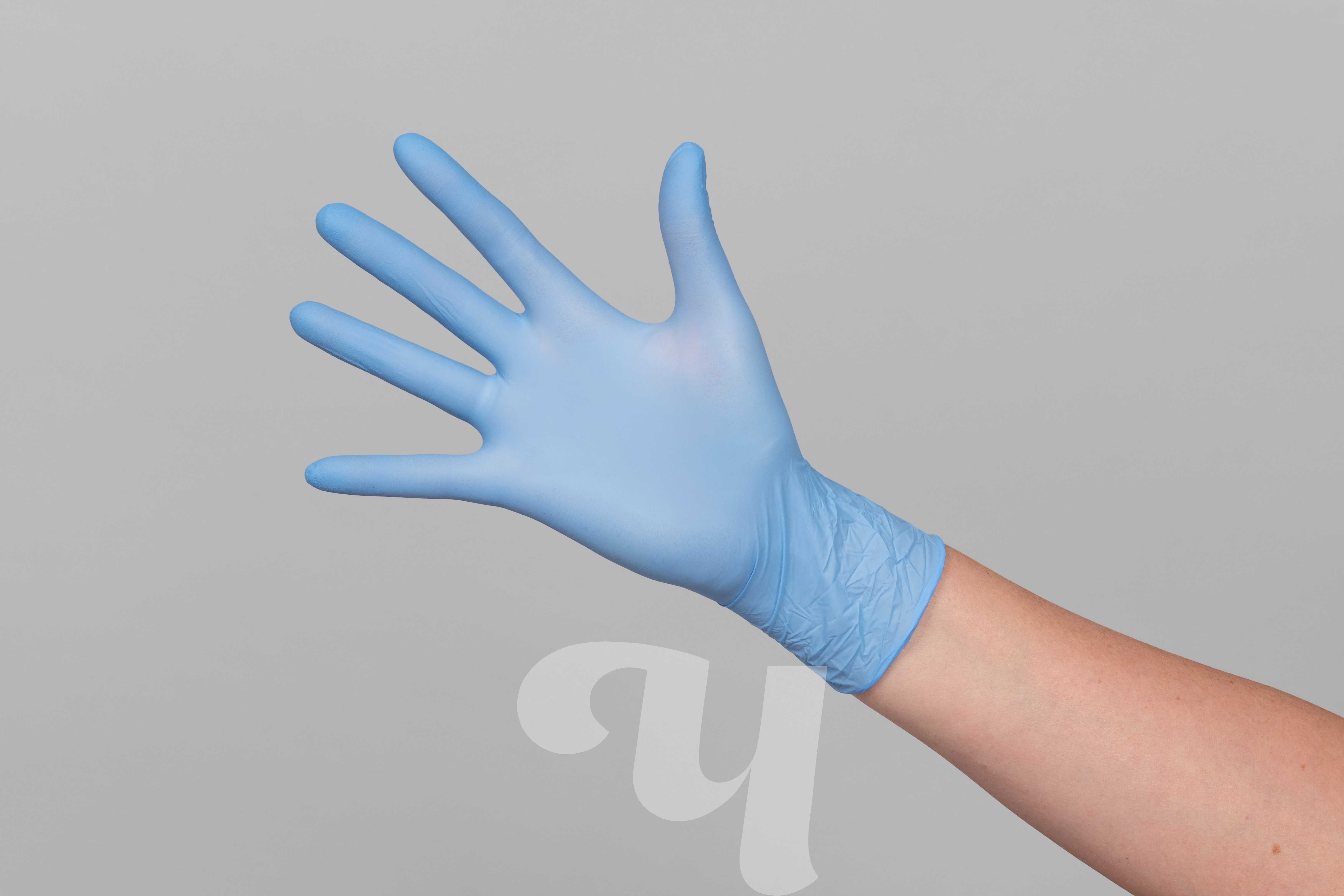 Перчатки нитриловые смотровые текстурированные для медицинских и бытовых манипуляций, вес одной перчатки - 3,7 г, длина манжеты - 240 мм.