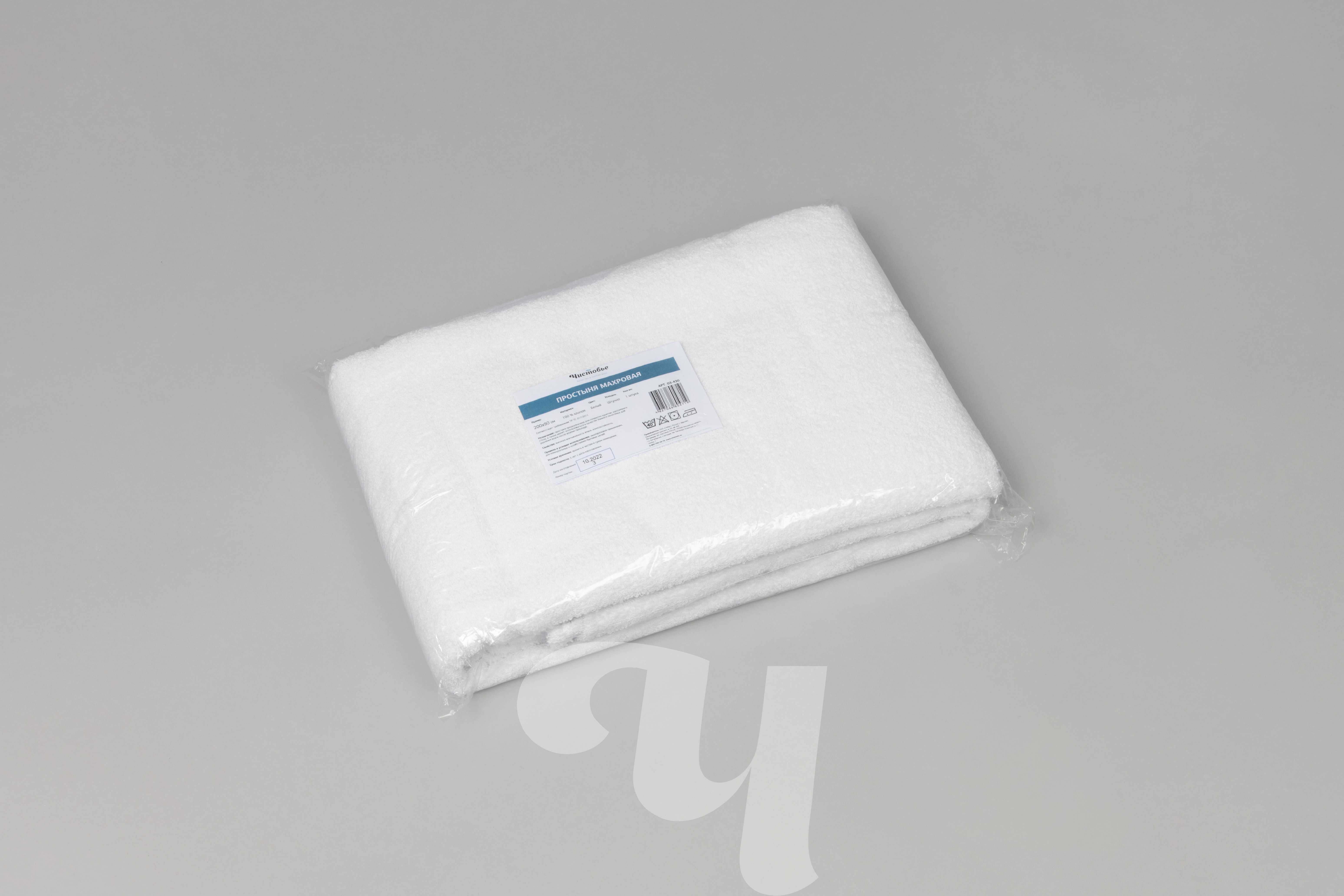 Простыня махровая, 200х90 см, Белый, 1 шт/упк