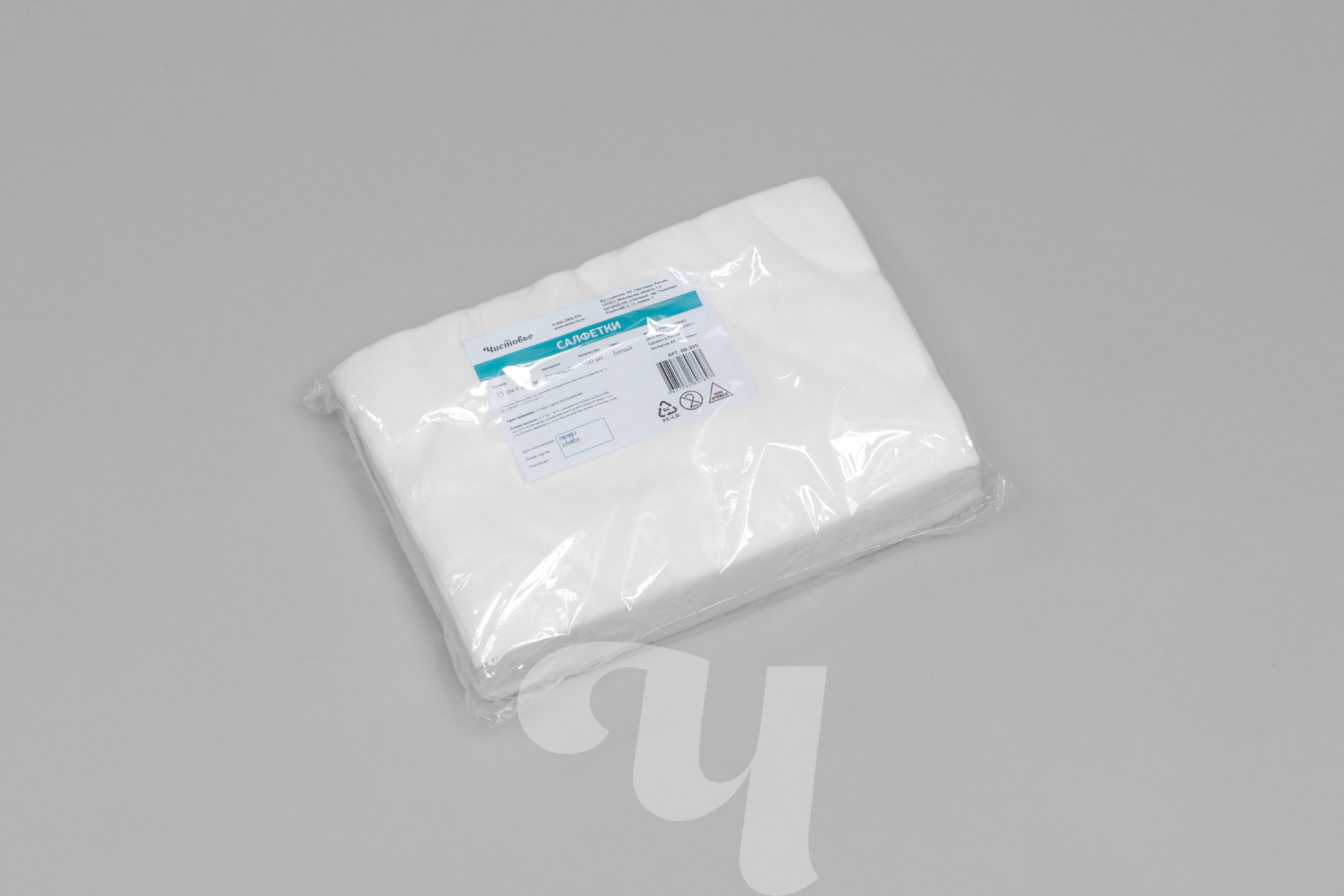 Салфетки медицинские из спанллейса, 15х20 см, белый, 100 шт/упк