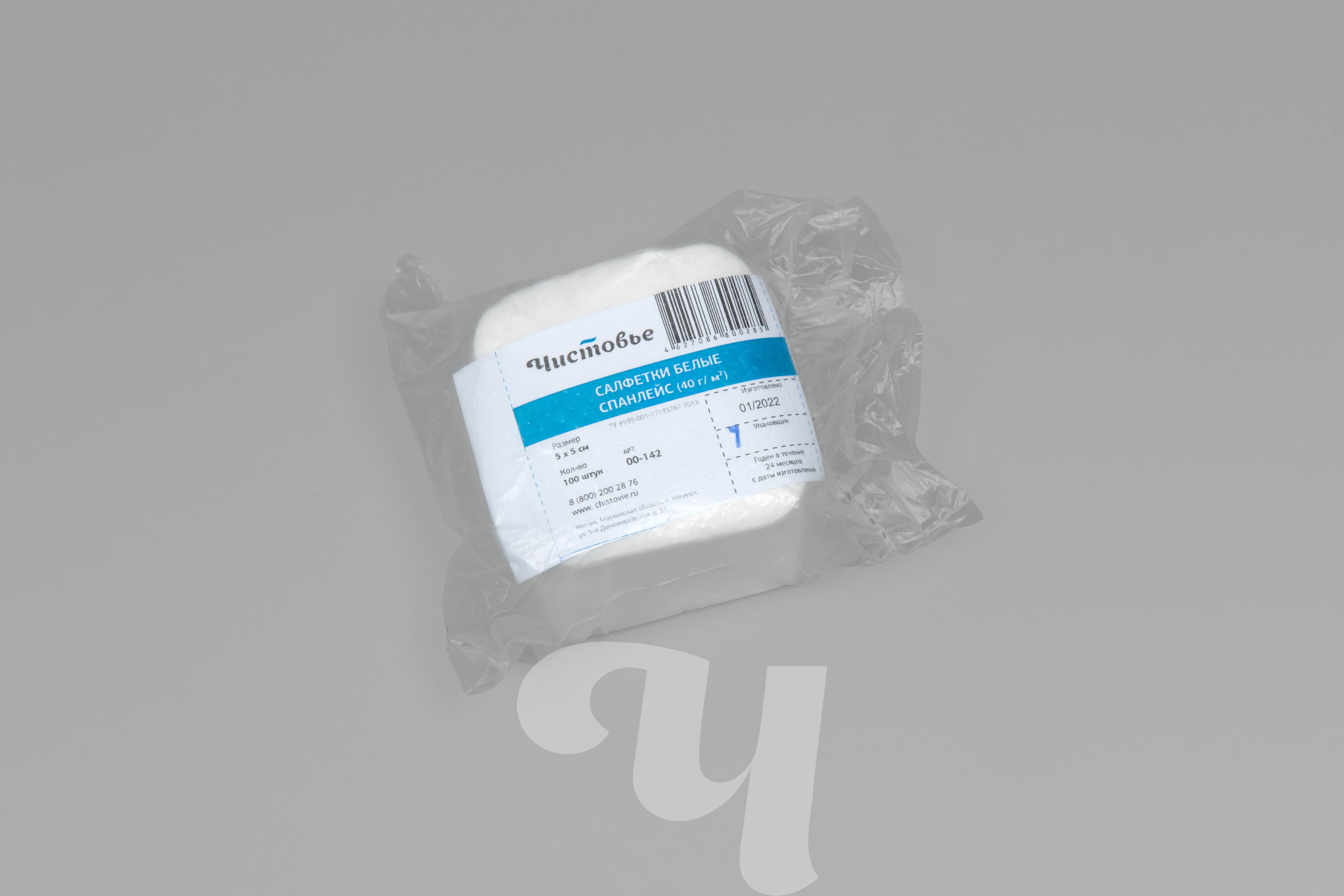 Салфетки из спанлейса, 5х5 см, белый, 100 шт/упк
