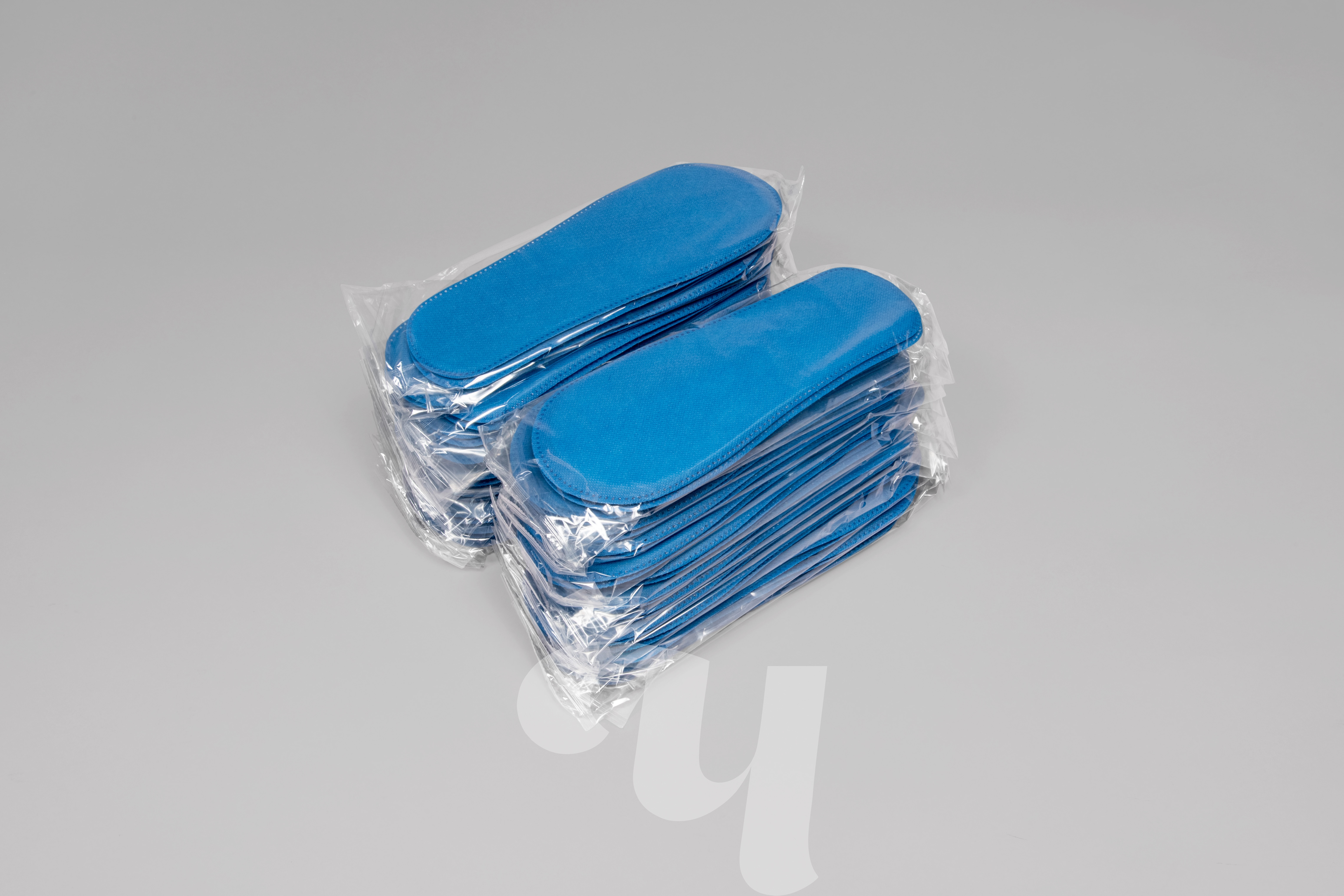 Тапочки с закрытым мысом из спанбонда обеспечивают надежную защиту ног клиентов. Используются в соляриях, фитнес-клубах, медицинских и косметологических кабинетах, в хостелах и гостиницах. Индивидуальная упаковка. Правый/левый. Не предназначены для использования на мокром и влажном покрытии. Состав: подошва вспененный полиэтилен (5 мм); Низ и верх - спанбонд 60 г/м2.