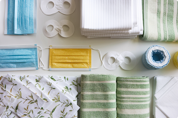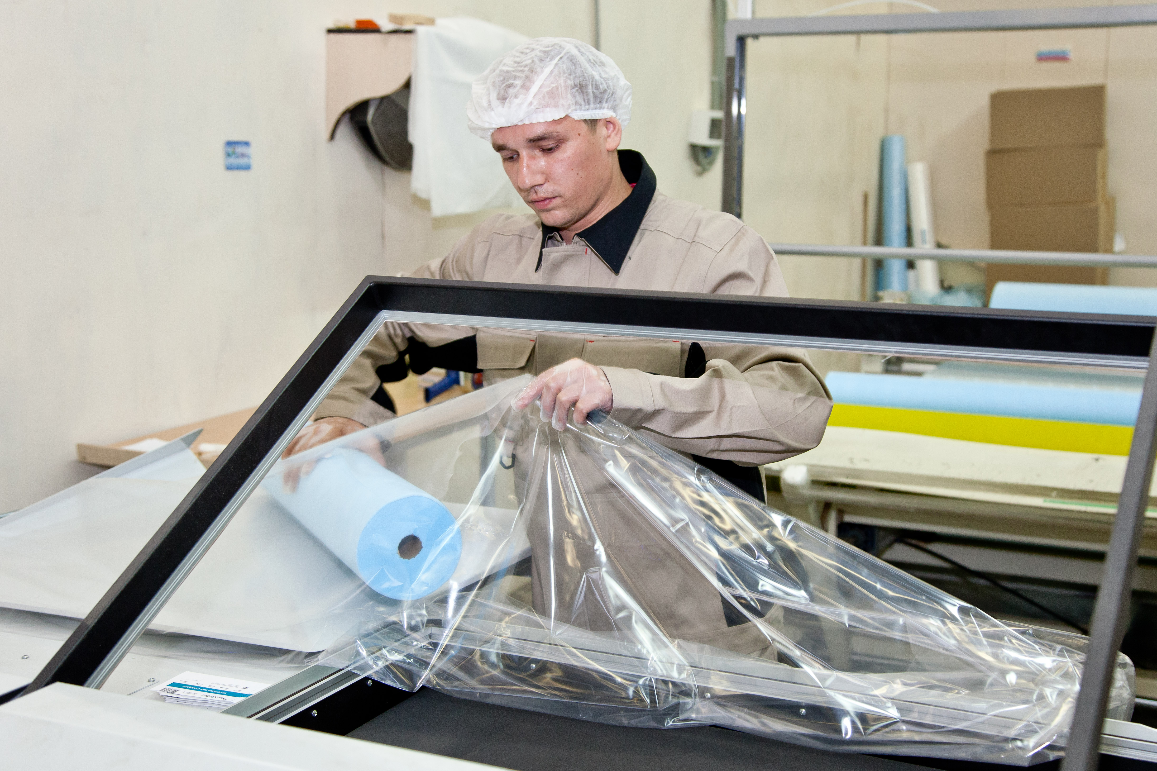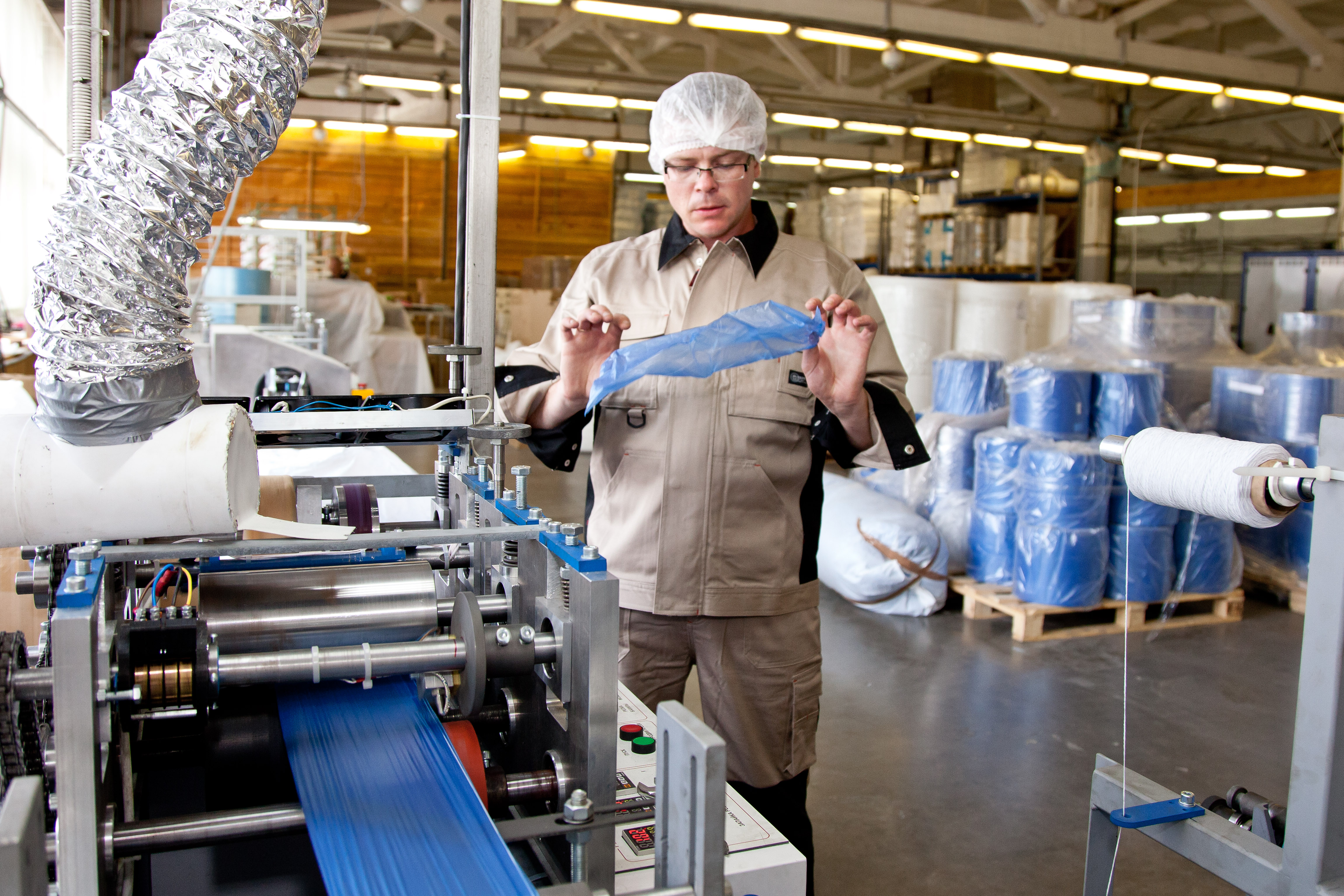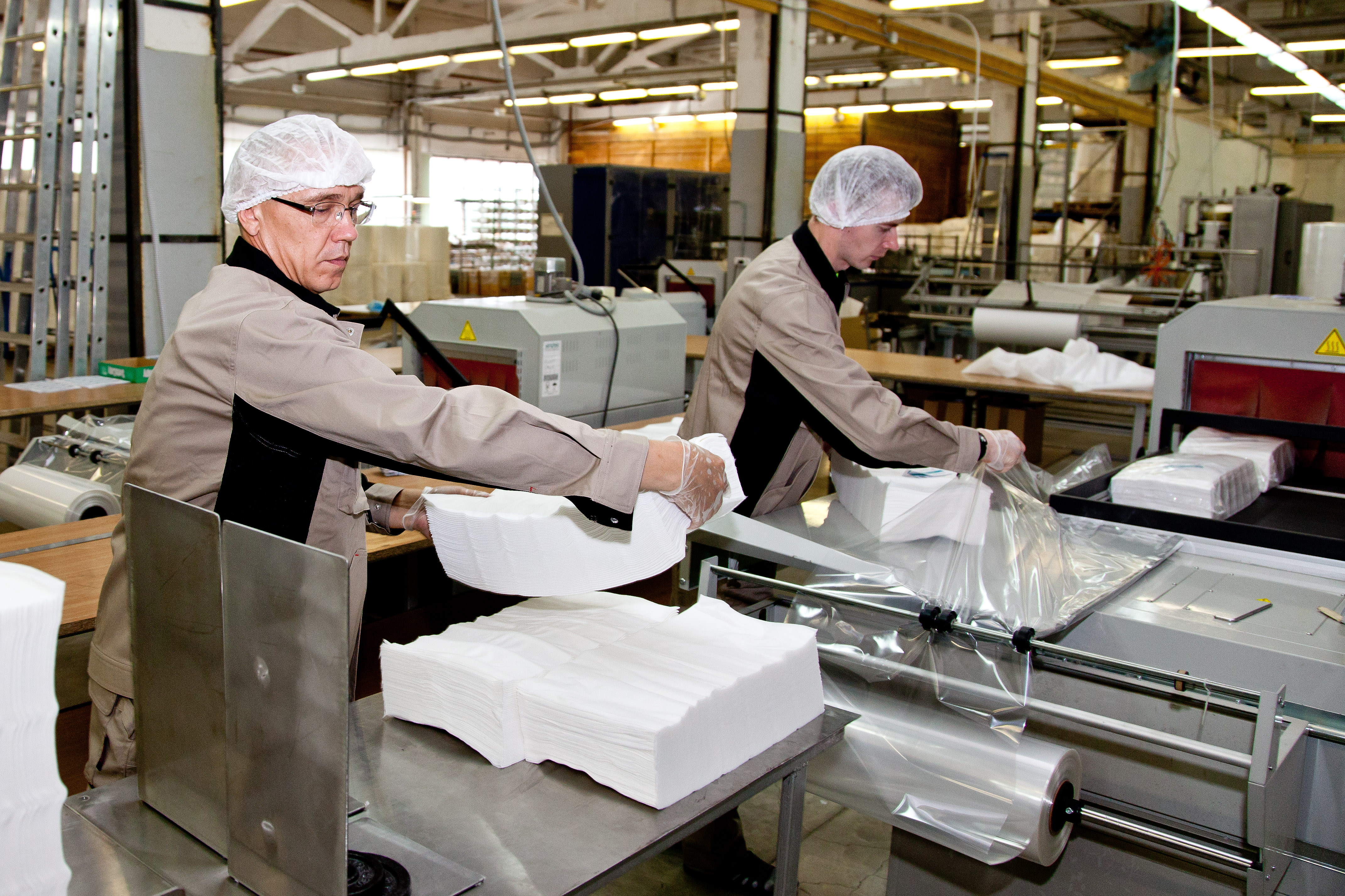 Наша техническая база позволяет производить собственное сырье: SMS, спанбонд, полиэтилен различных плотностей. Мы используем современные линии по пошиву, автоматизированные линии для разрезки, укладки и упаковки, а также быстро настраиваемые прессы.
